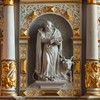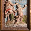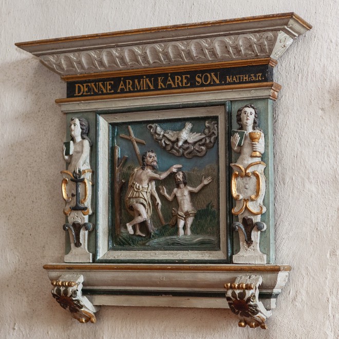 En dåbstavle har også Jesu Dåb som motiv. Dette relief flankeres af Håbet og Troen.