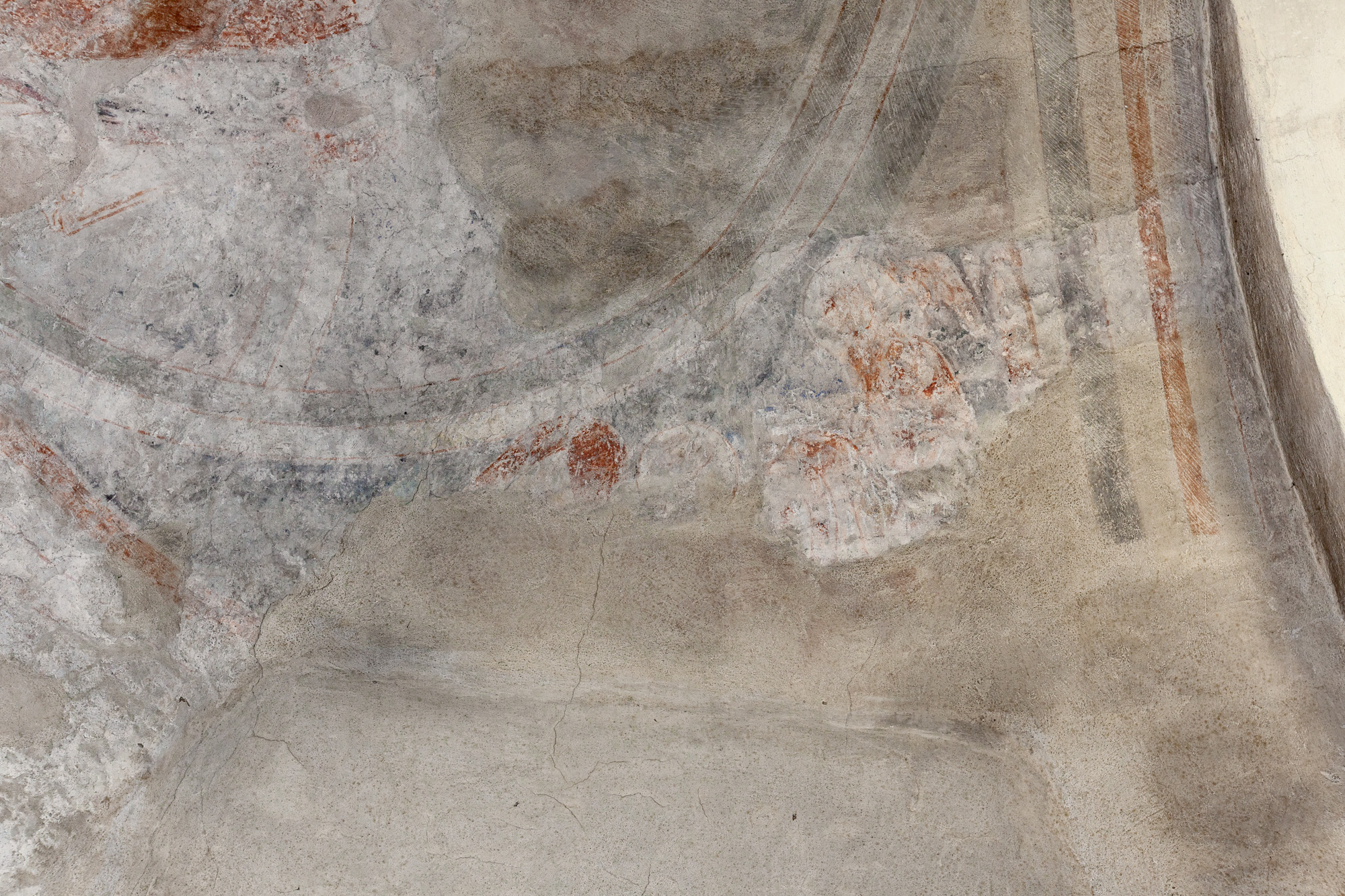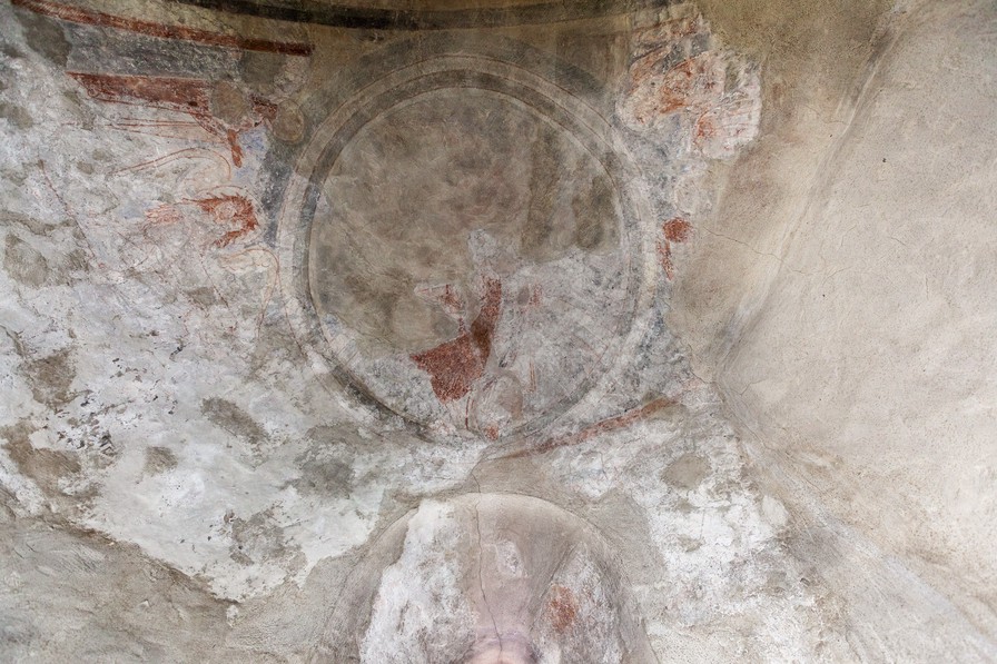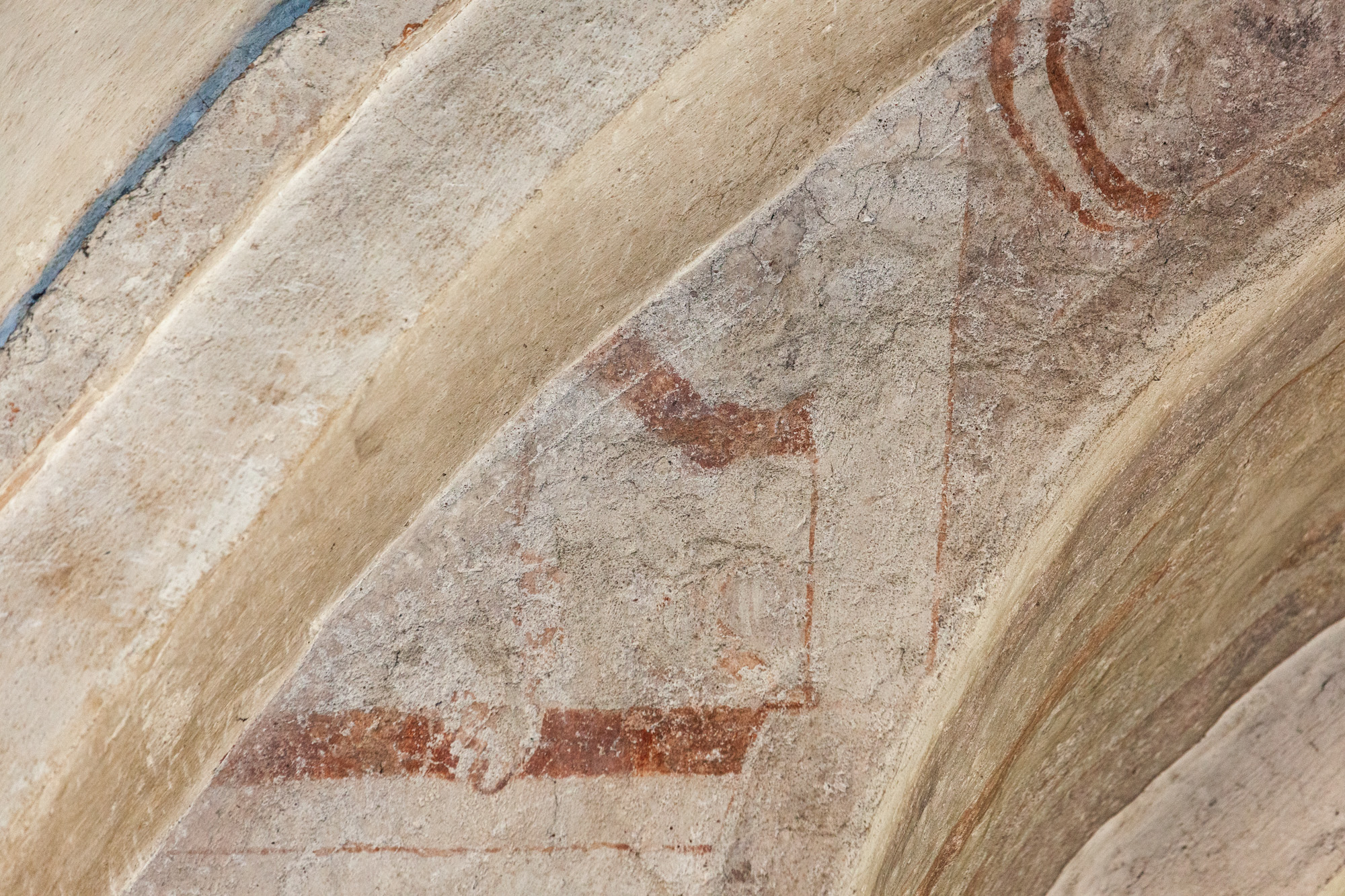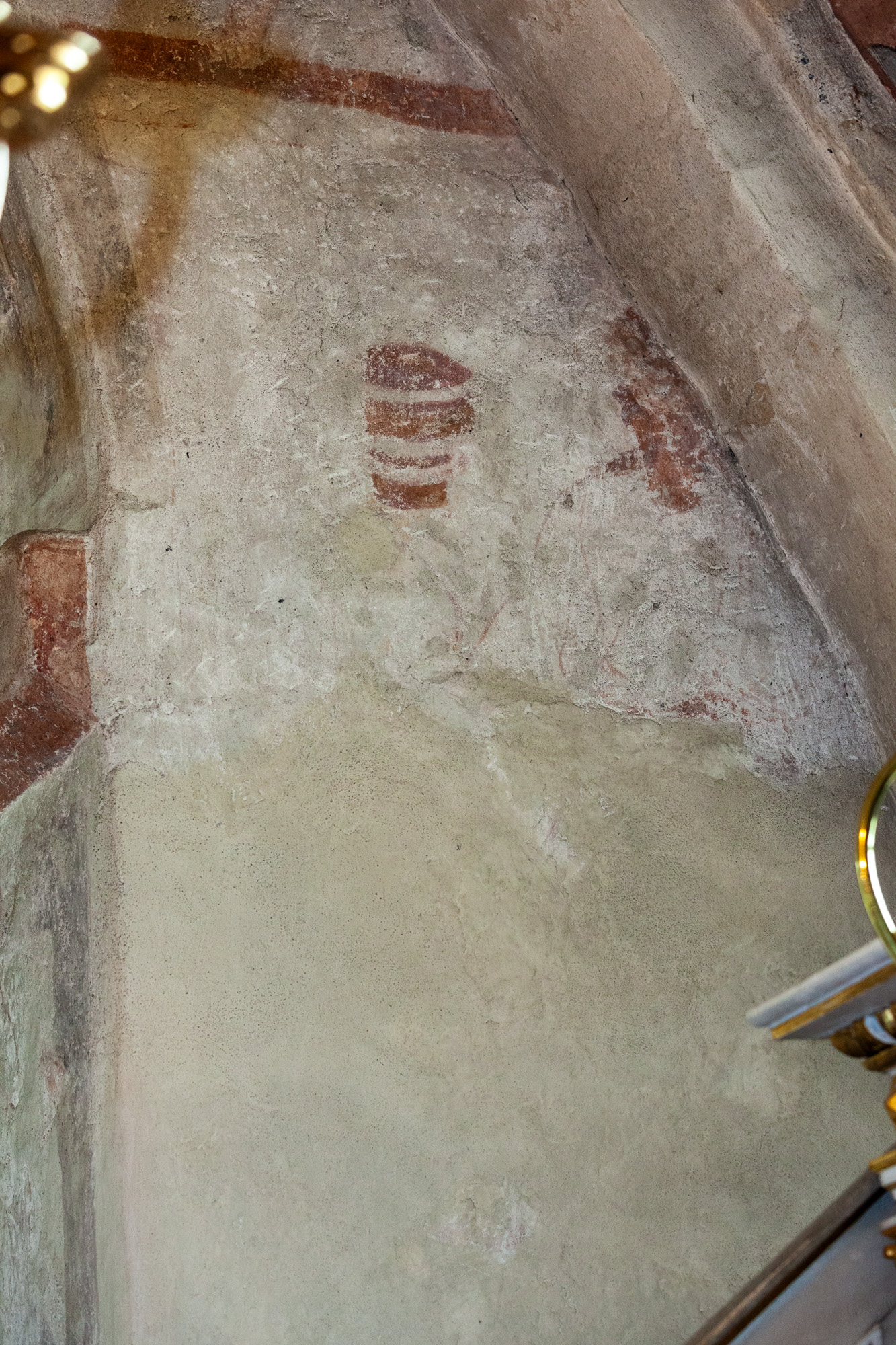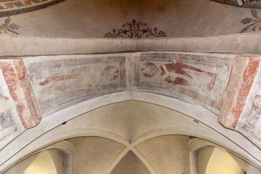 På korets østmur over hvælv (ingen fotos) er der en fremstilling af Kains og Abels offer. De tre andre mure over hvælv har også kalkmalerier, men fragmenterne er så små, at de ikke lader sig tolke.