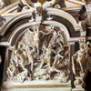 Fontehimlen hænger en kraftig arm. Øverst på fontehimlen står Kristus med jordkloden iklædt elegant draperi. I nicherne står putti med Kristi lidelsesredskaber. På konsollerne er der fremstillinger af dyder: Humilitas, Justitia, Spes, Fama, Virtus, Temperantia, Caritas og Fortitudo.