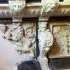I den nederste del er i et relief en allegori over lastens og dydens veje omgivet af konsoller med løver. I hjørnerne er der to store løver på spring med kanonkugler mellem poterne. Herover står der: