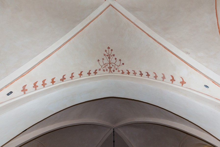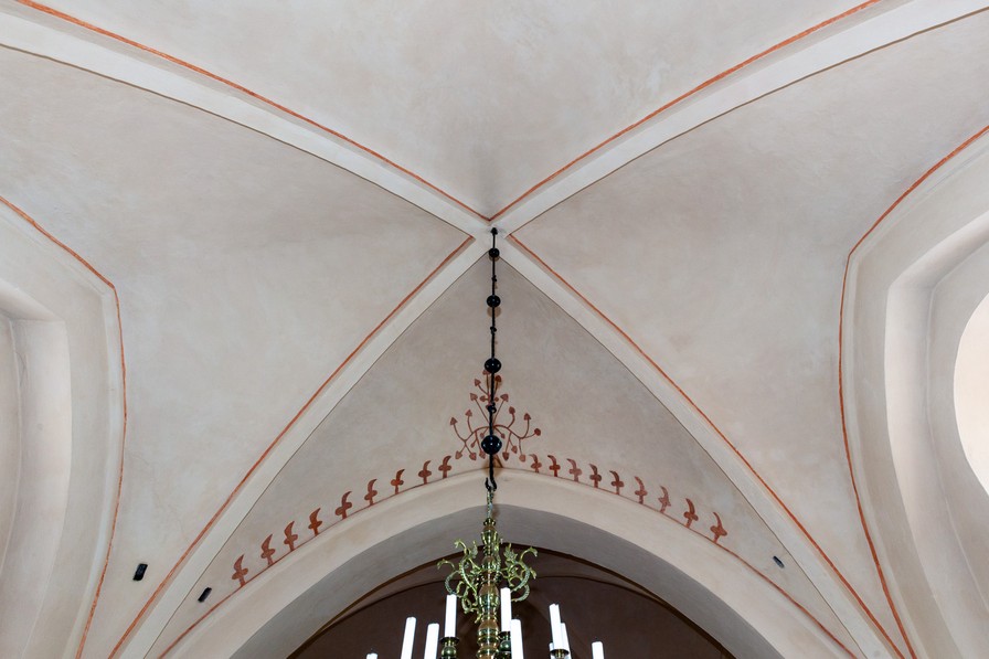 To fag i skibet har kalkmalerier fra 1400-tallet. Det er en murmesterbemaling med en enkel planteornamentik i rødt. Malerierne har været overmalet, men blev fremdraget ved en renovering af kirken 1953. De er ikke omtalt i A Catalogue 1976.