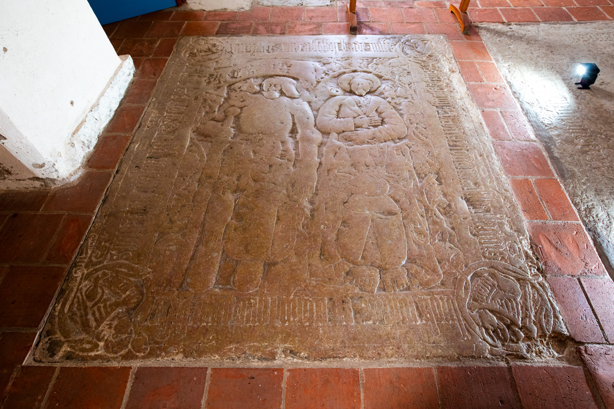 Gravsten over ridder Axel (Absalon) Brahe, død 1487, og hans hustru Marina Lunge samt nogle af deres børn.