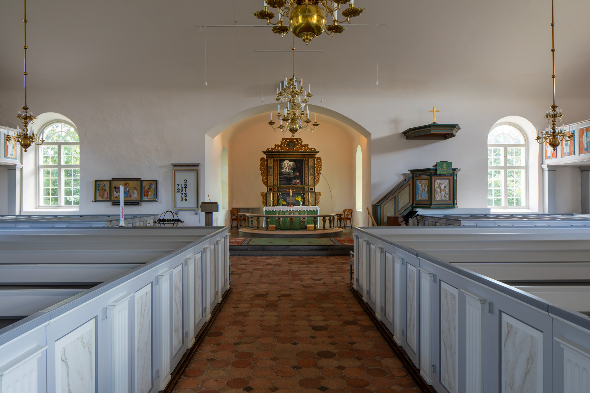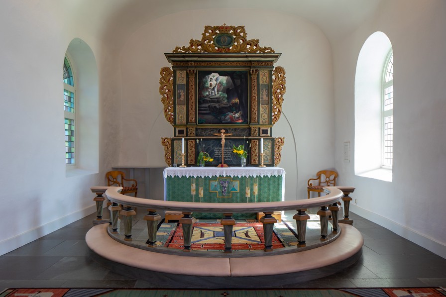 Ved en restaurering af kirken 1928-1929 blev en middelalderlig alterbordplade anbragt på alterbordet, efter at den i en årrække havde fungeret som trappesten i skolen. Den har relikviegemme, men ingen konsekrationskors. Pladens nordside mangler profilering, hvilket tyde på, at den oprindeligt stammer fra et sidealter på nordsiden af triumfbuen.