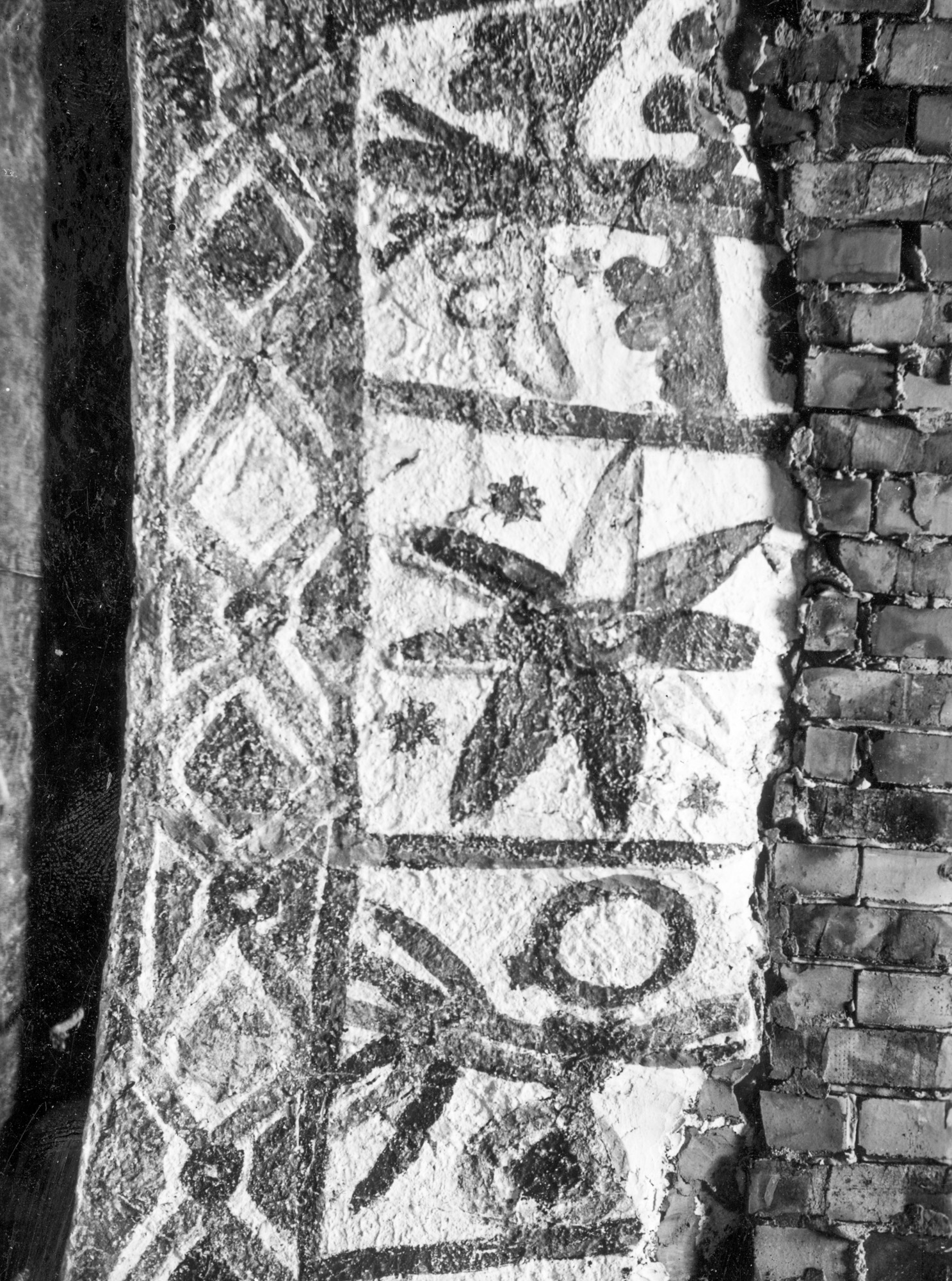 I tribunbuen findes nogle tidligt gotiske kalkmalerier fra 1300-1350. De to delvist bevarede motiver er for fragmentariske til at kunne identificeres. Det ene viser en kvinde med krone og langt bølgende hår. Det kan enten være en helgeninde eller Jomfru Maria. Det andet viser en person med glorie og en person uden, men med bispehue.