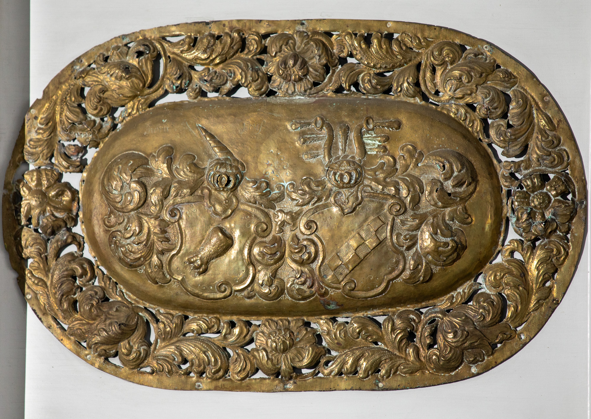 På foden findes endvidere to indgraverede våbenskjold for Christopher Ulfeld til Svenstrup, Råbelev og Vandkive og Maren Urup til Ugerup og Ovesholm. Dertil initialerne C og WF samt M og W (W = U). De kan have bekostet en istandsættelse af kalken, da de blev gift i 1605, eller ved deres søn Bjørns vielse med Margrethe Brahe 1639. Det kan være i forbindelse med denne reparation, at våbenskjoldene er byttet om.