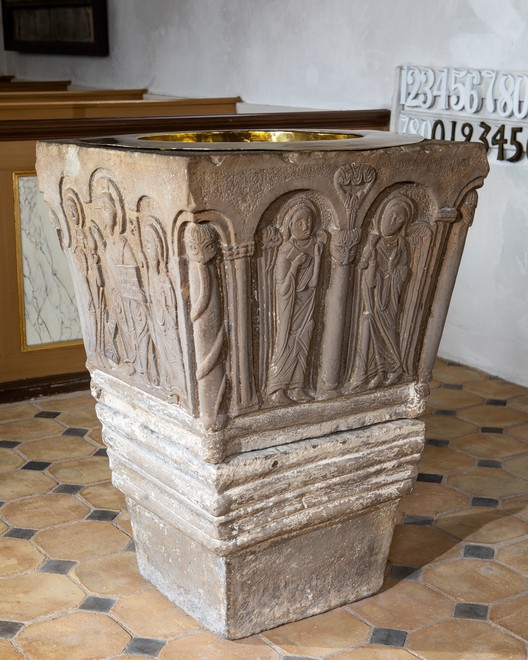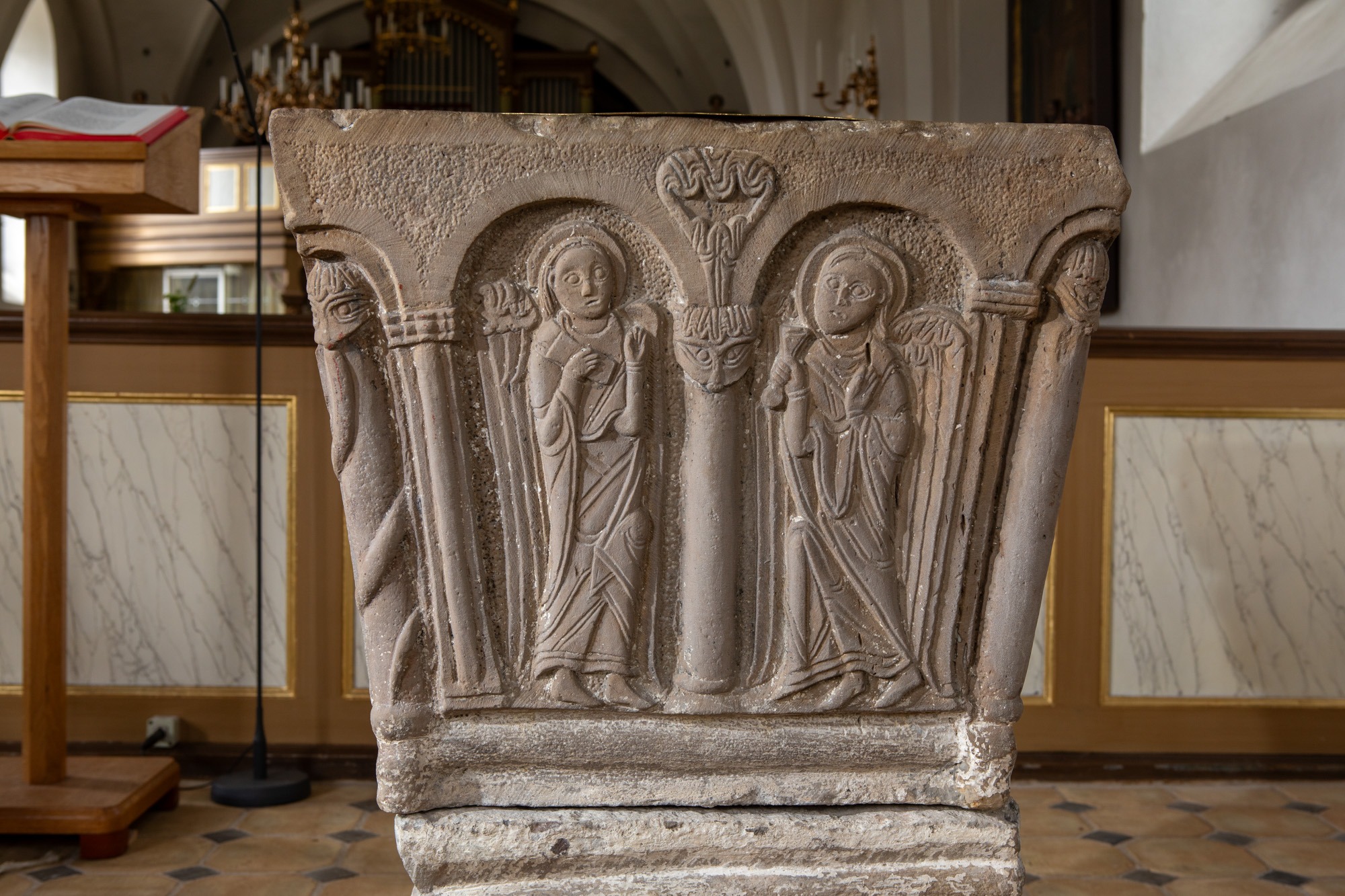 Kummens form er den samme som Munkerupgruppen, men hører til sin egen grupp: Össjögruppen. På siderne er der to eller tre rundbuer. På sider med to buer er der en søjle i midten. En slange snor sig om nogle af søjlerne. Det kan være en hentydning til Syndefaldet.