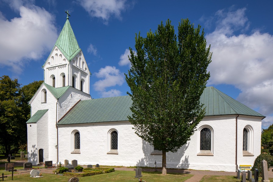 Kirken blev opført i anden halvdel af 1100-tallet. Den bestod da af skib, kor og sikkert også apsis. I senmiddelalderen blev der bygget et våbenhus foran den sydlige indgang. I samme periode fik den også hvælvinger. Tårnet er formodentlig også fra senmiddelalderen. På et ukendte tidspunkt blev der opført et sakristi på nordsiden. I 1864-1866 blev kirken genstand for en omfattende ombygning. Kor, apsis, våbenhus og sakristi blev revet ned. Kirken blev forlænget mod øst og fik det nuværende tresidede kor. Indgangen blev flyttet til tårnets vestfacade. Vinduerne blev gjort større, og tårnet øverste del blev bygget om. Hvælvene i skibet blev fjernet.