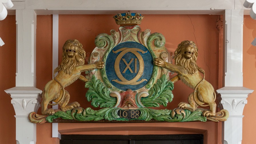Tavle med Carl XI’s monogram, 1688. Det er en af de 47 tavler, der er blevet til på generalguvernør Rutger von Aschebergs initiativ.