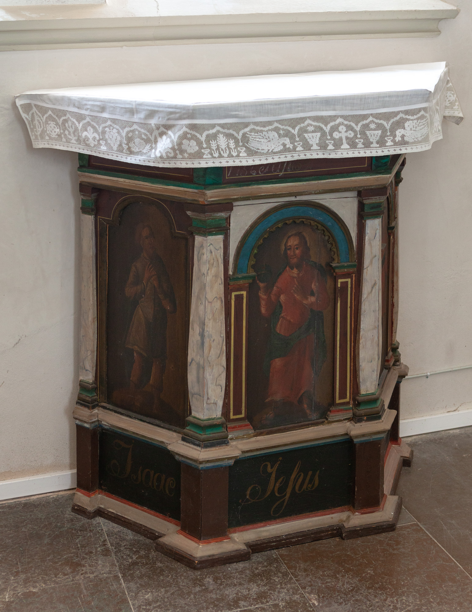 En prædikestol fra 1756 er blevet til et lille alterbord – et såkaldt ”dopaltare”.