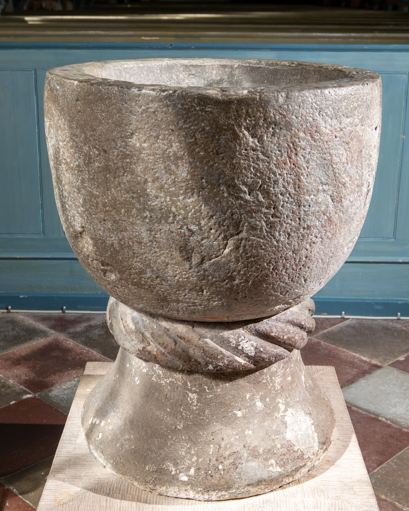 En anden indskrift oplyser, at det blev skænket til kirken 1728.