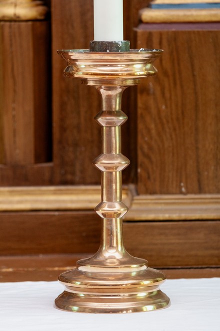 Døbefont af sandsten. Den har fals og udtømningshul. Dens profil er rundet nedad med en rundstav forneden. Lidt under kummens overkant er en tovstav. I slutningen af 1870’erne blev den ”restaureret”. Derfor er det uklart, hvordan den oprindelig har set ud. Den står på et pyramideformet skaft med en speciel udsmykning, som er af nyere dato, men var kendt af C.G. Brunius. Den er ikke tilskrevet nogen gruppe.