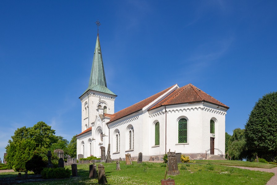 Den nuværende kirke er opført 1876-1877. Den erstattede en romansk kirke, som bestod af skib, kor og apsis. Den var opført af kampesten og med fint tilhuggede sandsten omkring vinduer og døre.