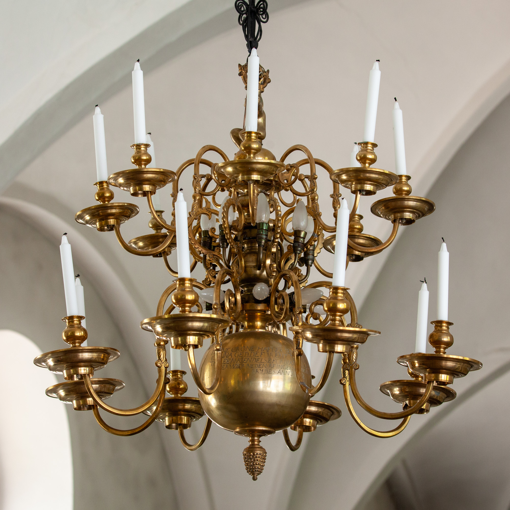 Lysekrone med indskrift:
