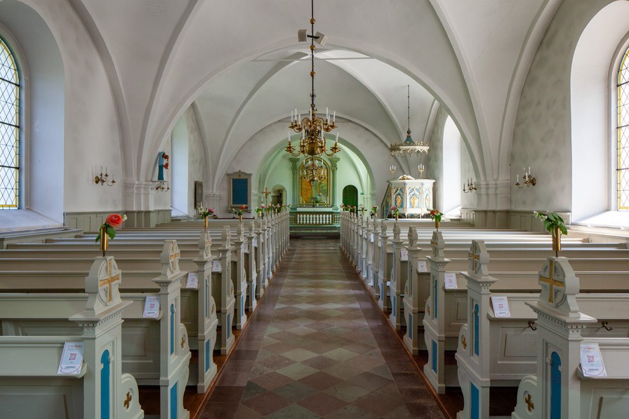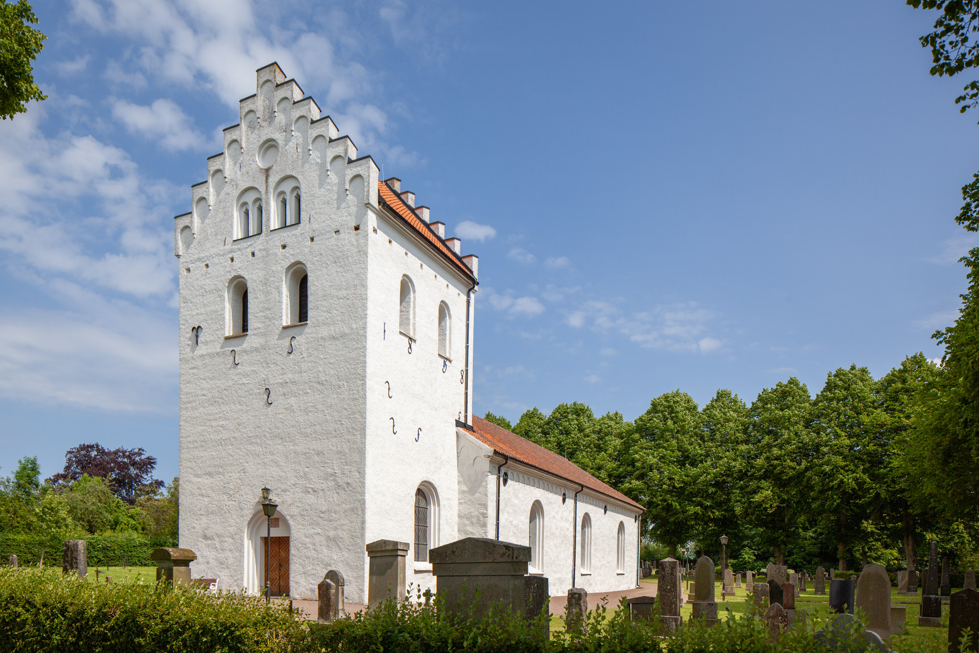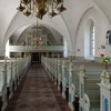 Den oprindelige romanske kirke var opførti 1200-tallet. Den gamle kirkes skib er fundet indenfor murene af det nuværende skib. Den bestod af skib, kor og apsis. Bebyggelseregistret formulerer det således: ” Den forna kyrkan hade en typiskt romansk plan med långhus, ett kor i flykt och en absid.” Det må forstås sådan, at det har været en langhuskirke, hvor skib og kor udgør ét stort rum. Kirken havde et tårn fra slutningen af 1400-tallet eller begyndelsen af 1500-tallet. Tårnet havde samme bredde som skibet. Derudover vides meget lidt om den gamle kirke.