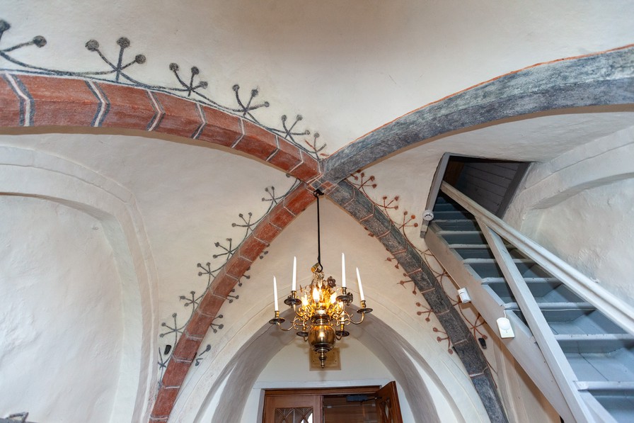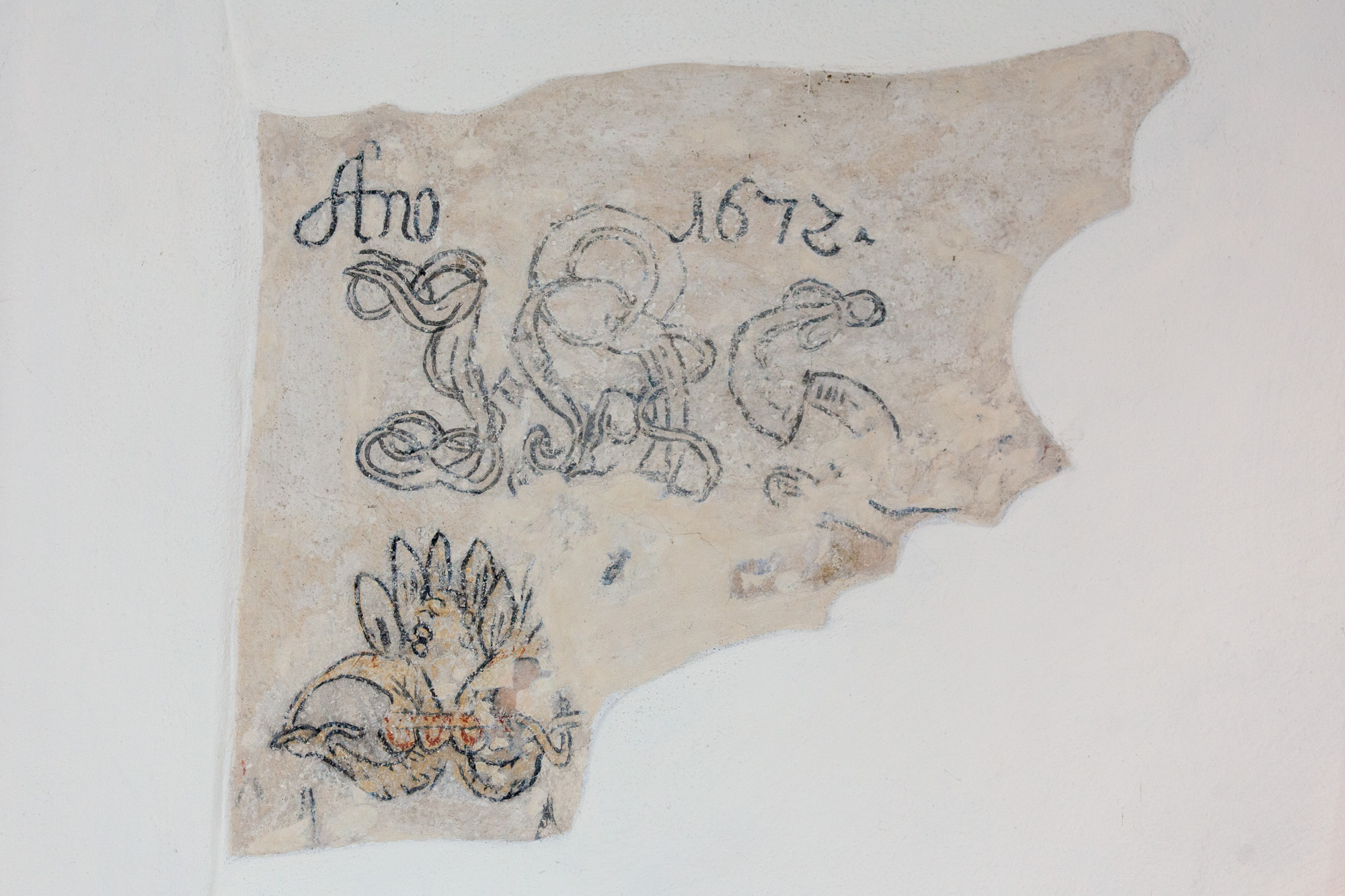 Spor af kalkmalerier er konstateret på kvadrer i den nye kirkes vestgavl. Det er dog for lidt til, at man ved noget om periode eller motiver.