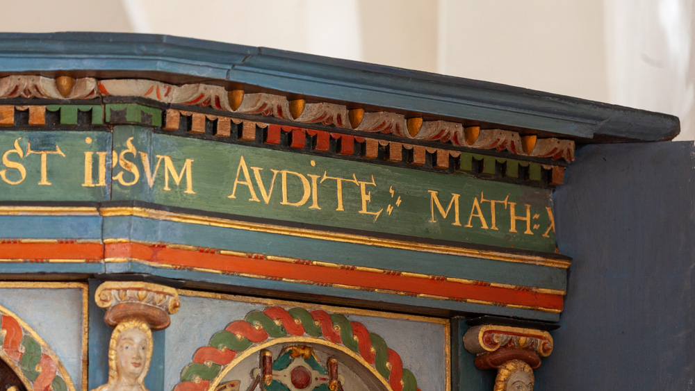 - Beati qvi audiunt verb(um) dei et custodiunt illu(d) (Salige er de, som hører Guds ord og gemmer det.