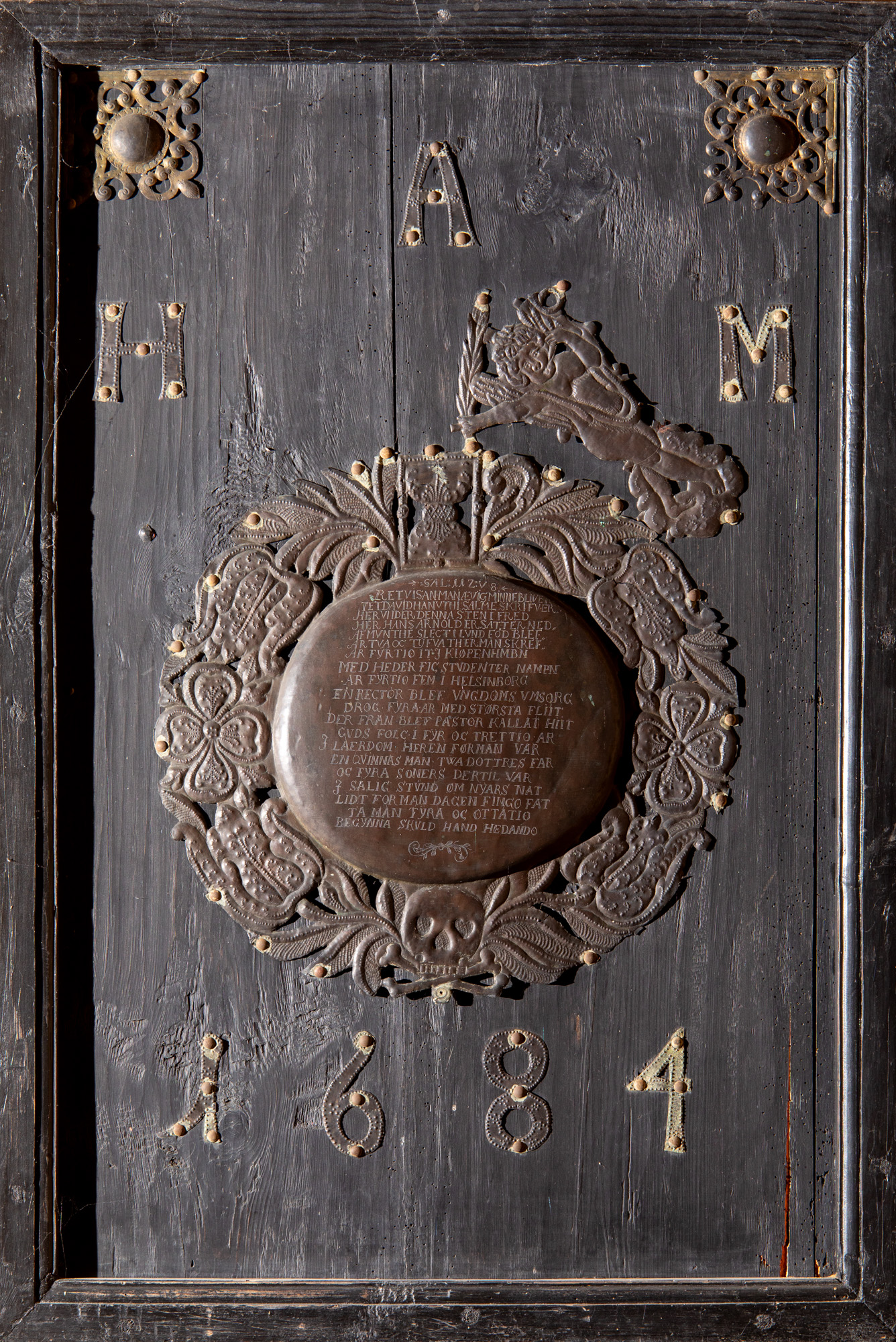 Teksten på kistepladen er et eksempel på blandingssprog, som er typisk for 1680’erne, hvor personer med dansk som modersmål forsøger sig med svensk.