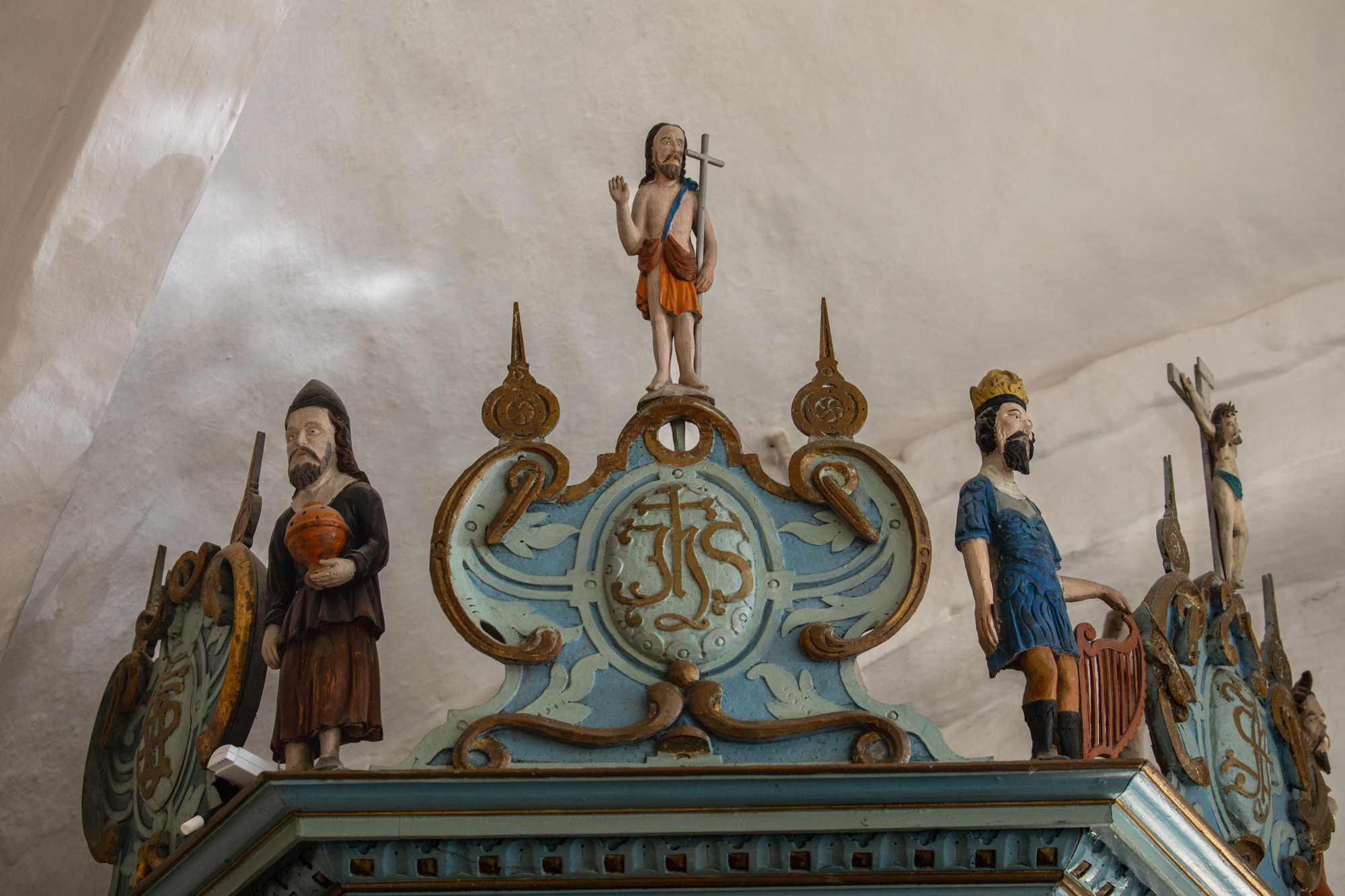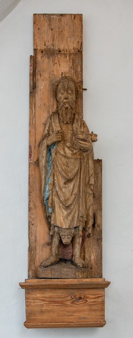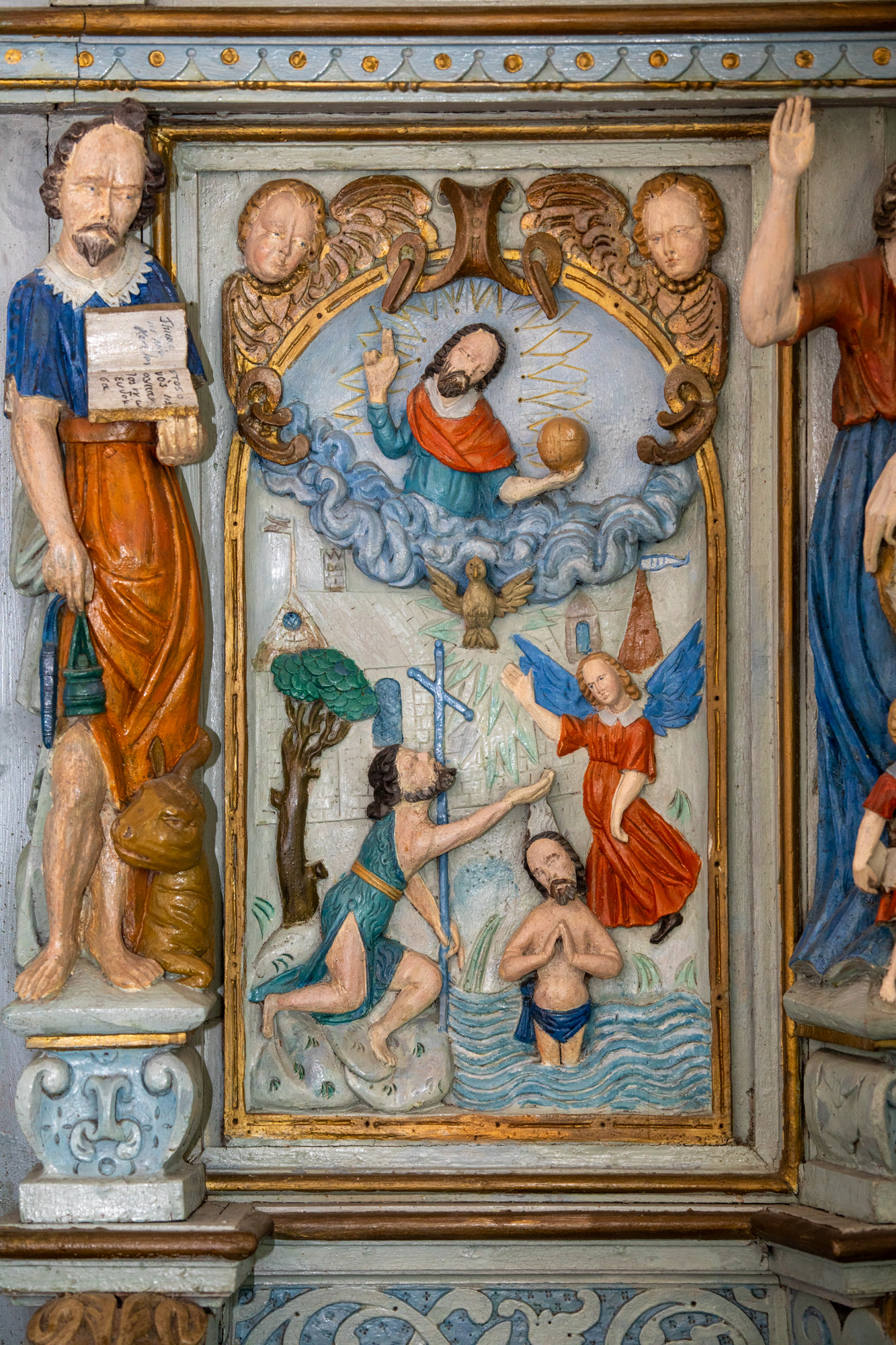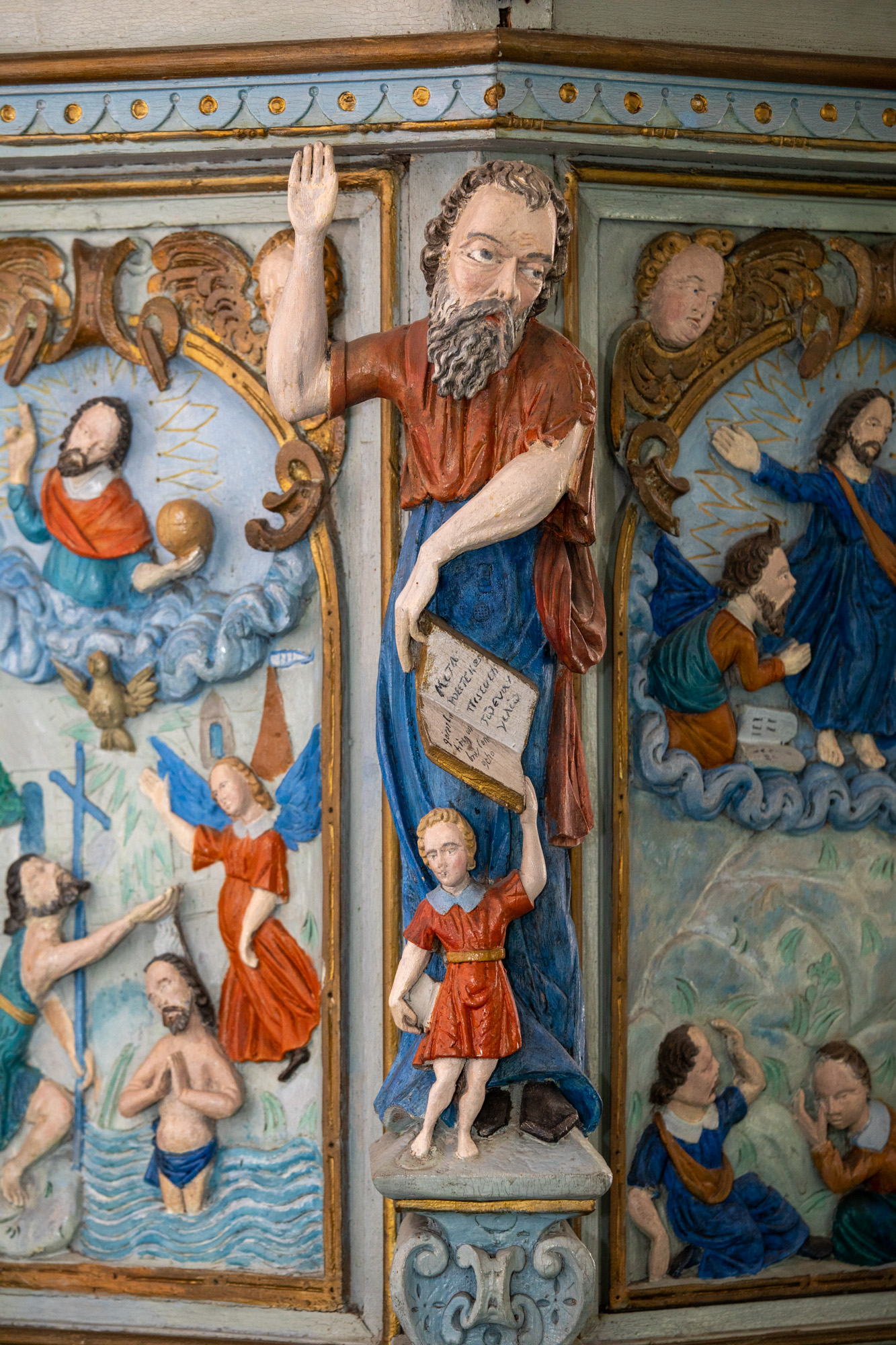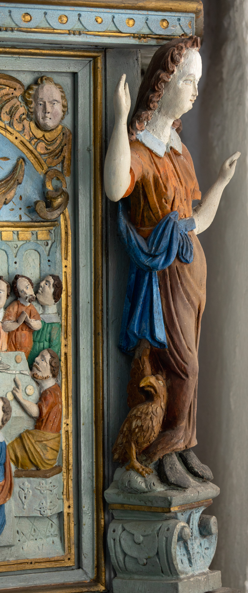 Selve skabet har haft en baldakin. De runde huller over Johannes’ hoved er spor efter den.
