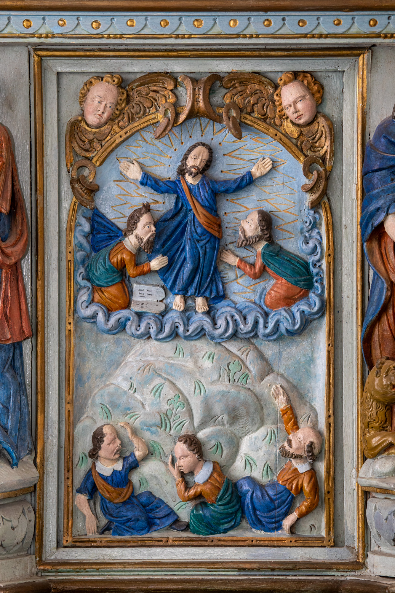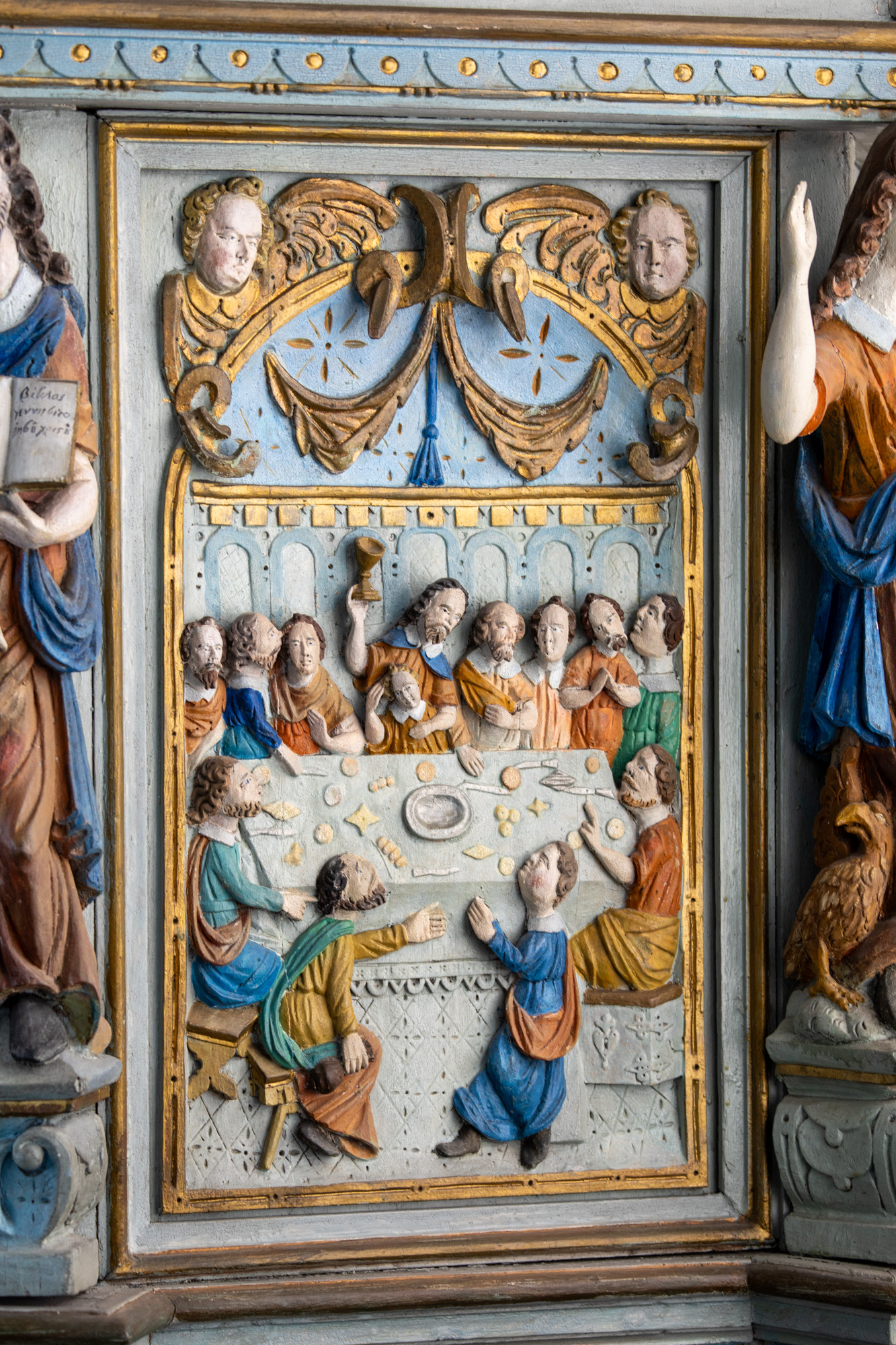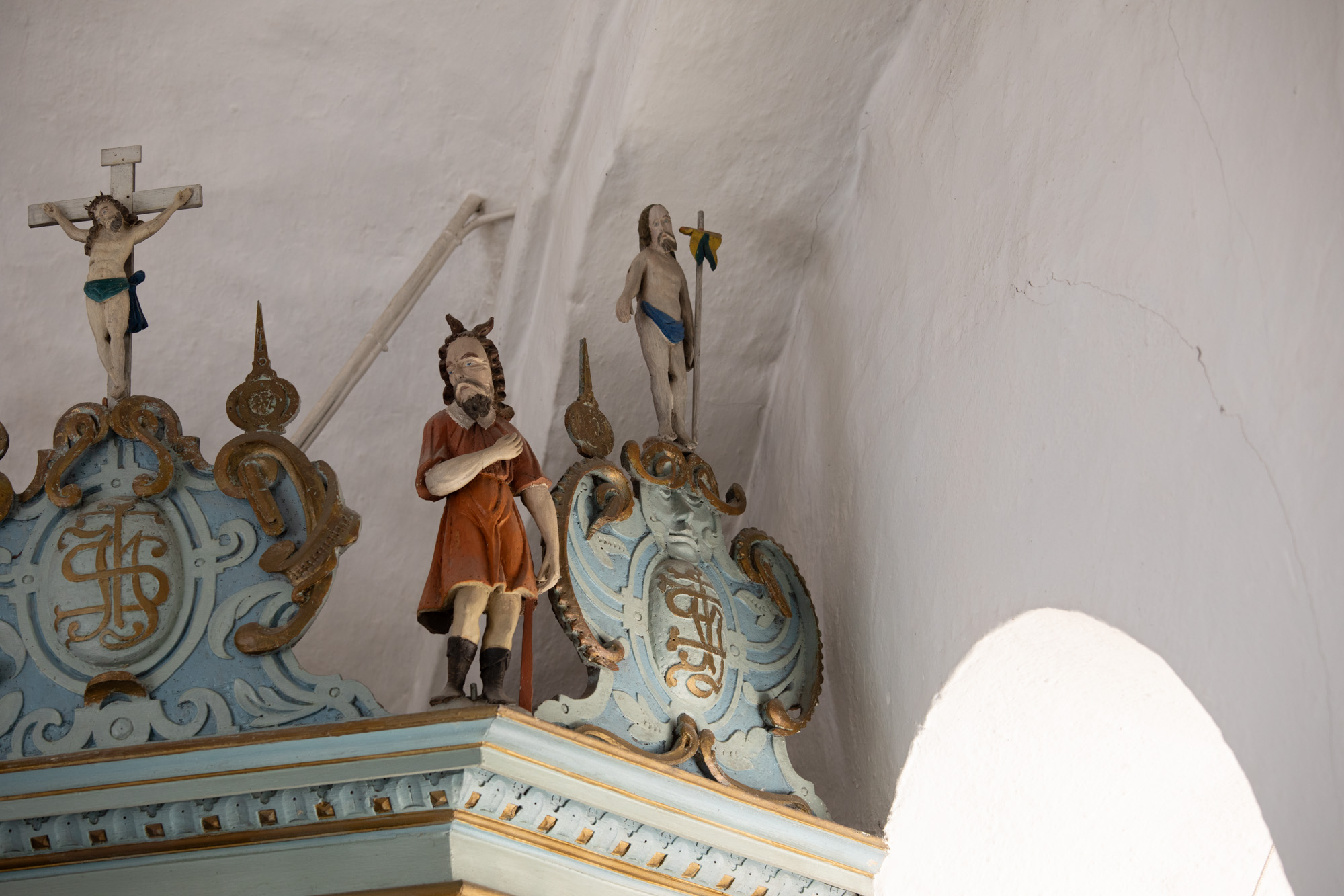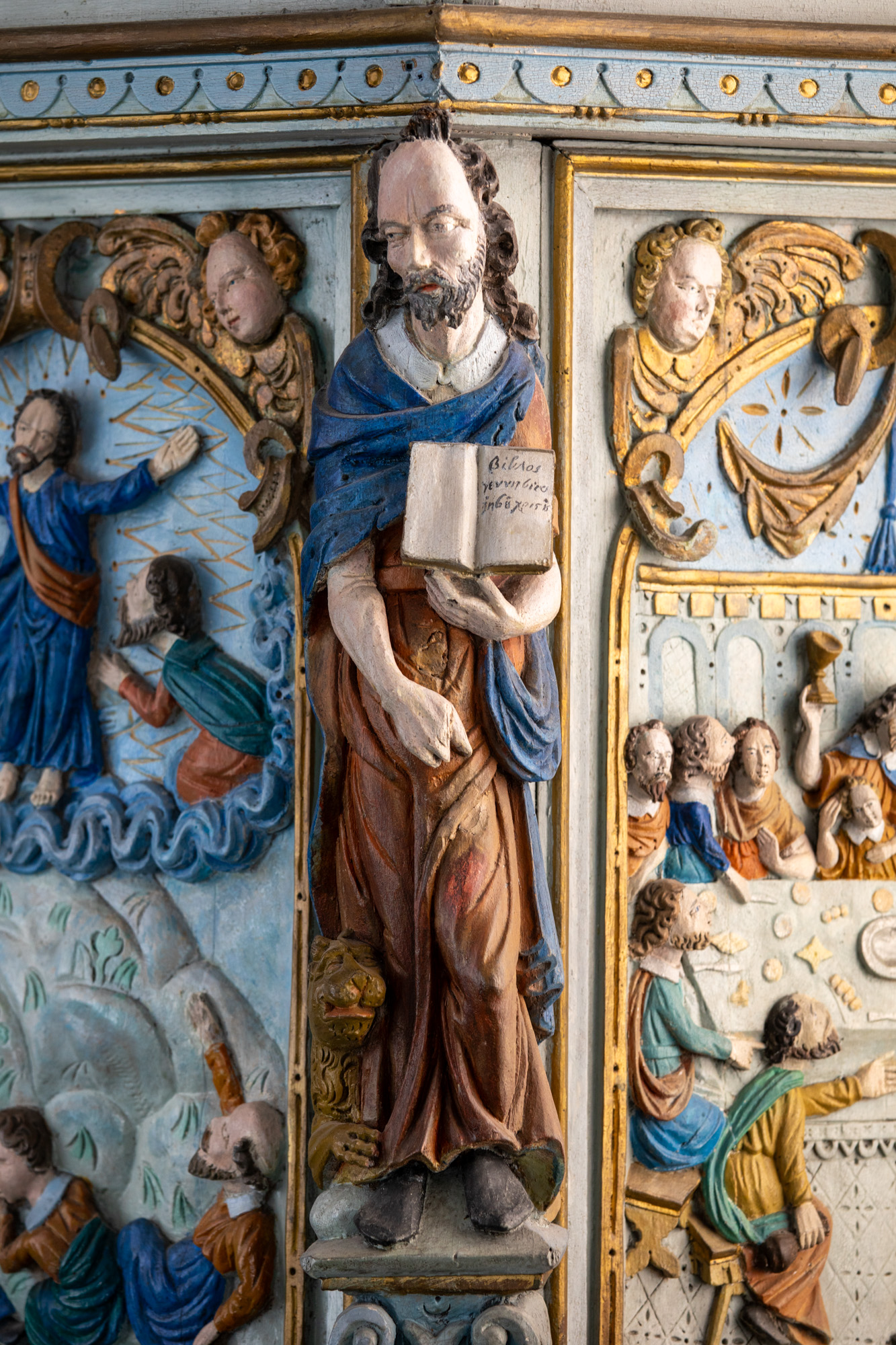 Selve skabet har haft en baldakin. De runde huller over Johannes’ hoved er spor efter den.