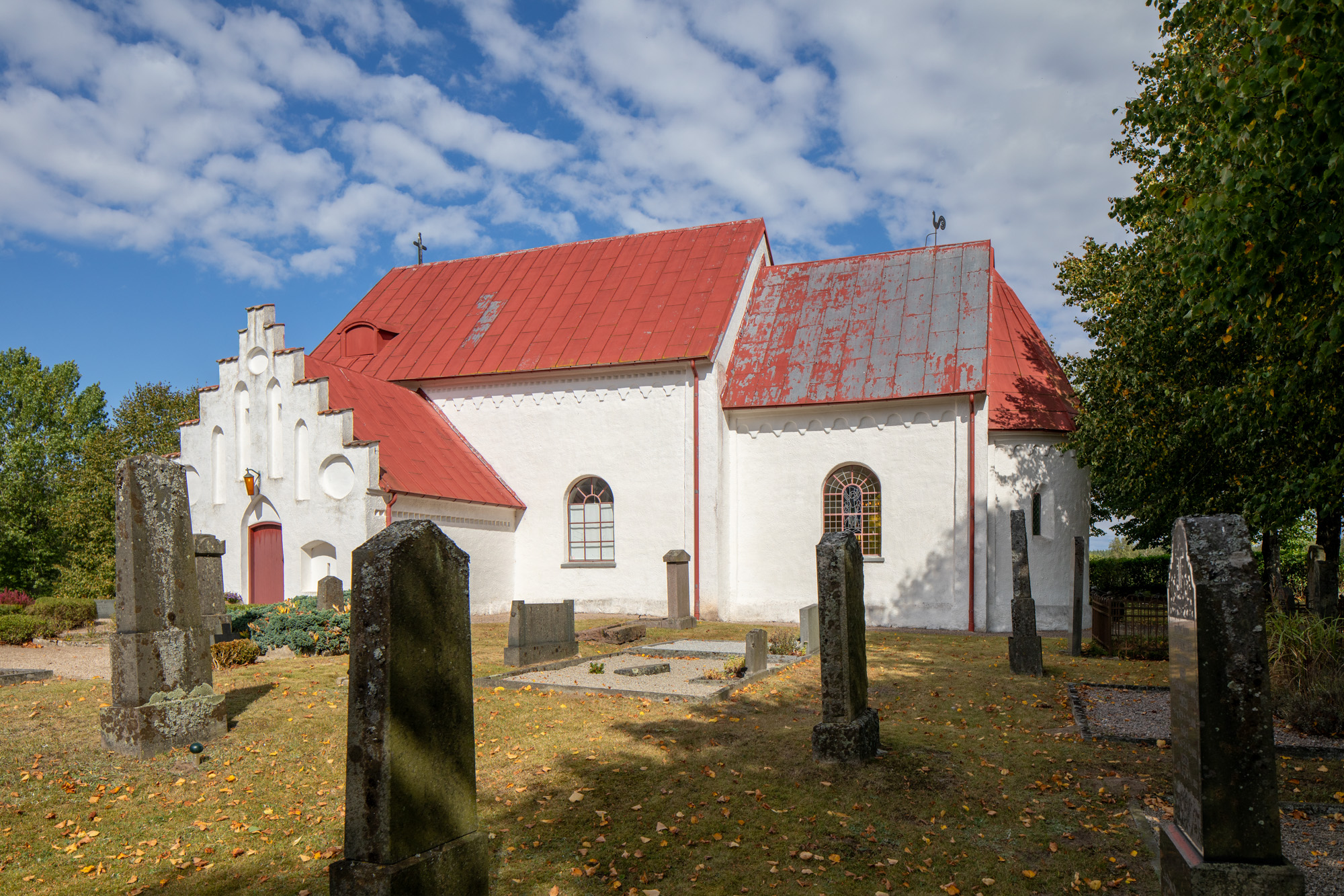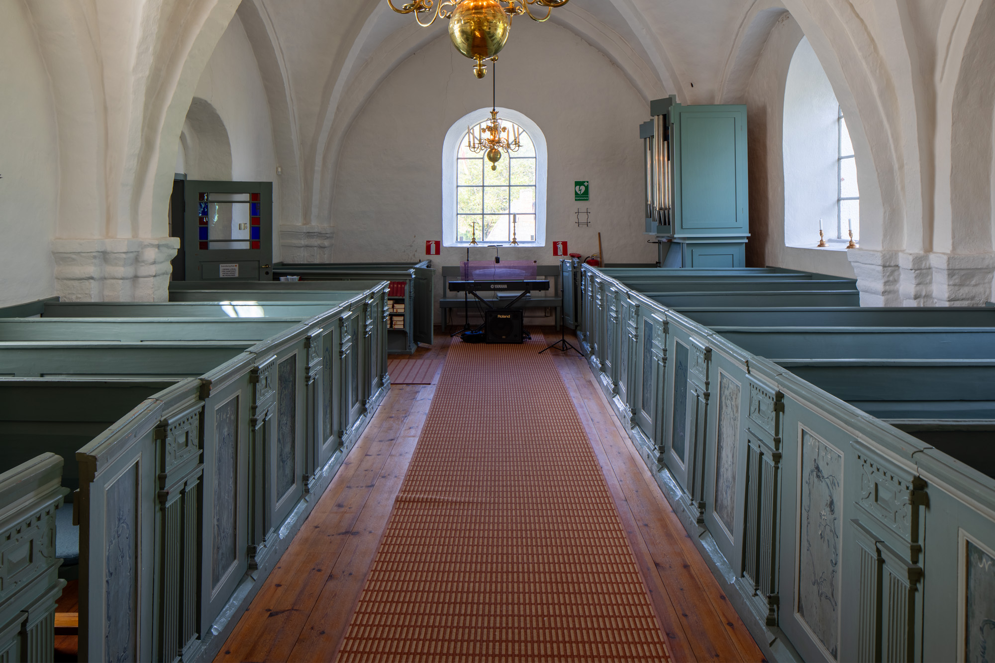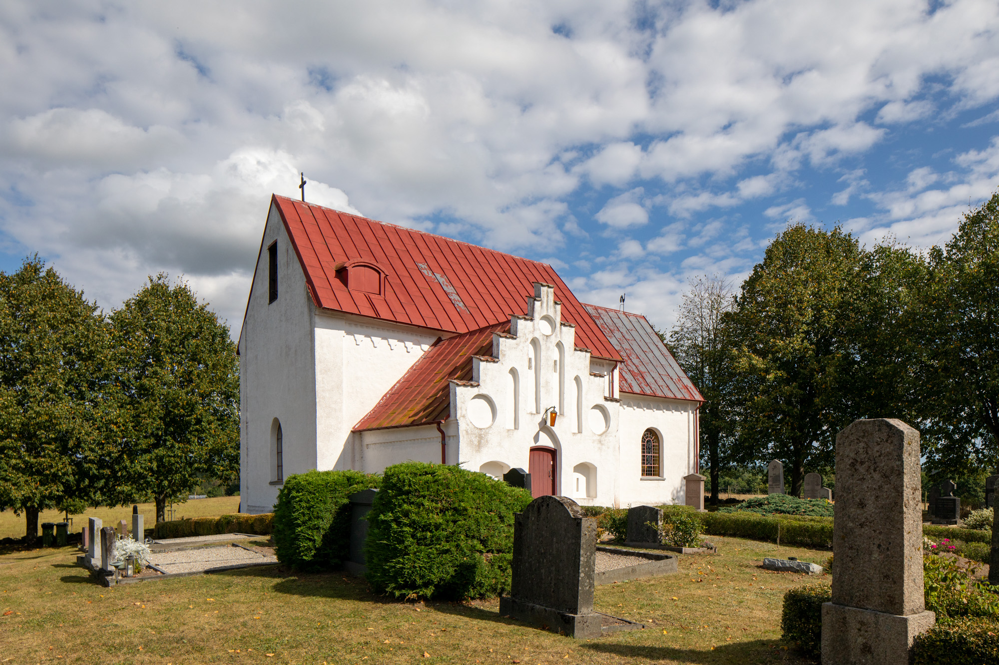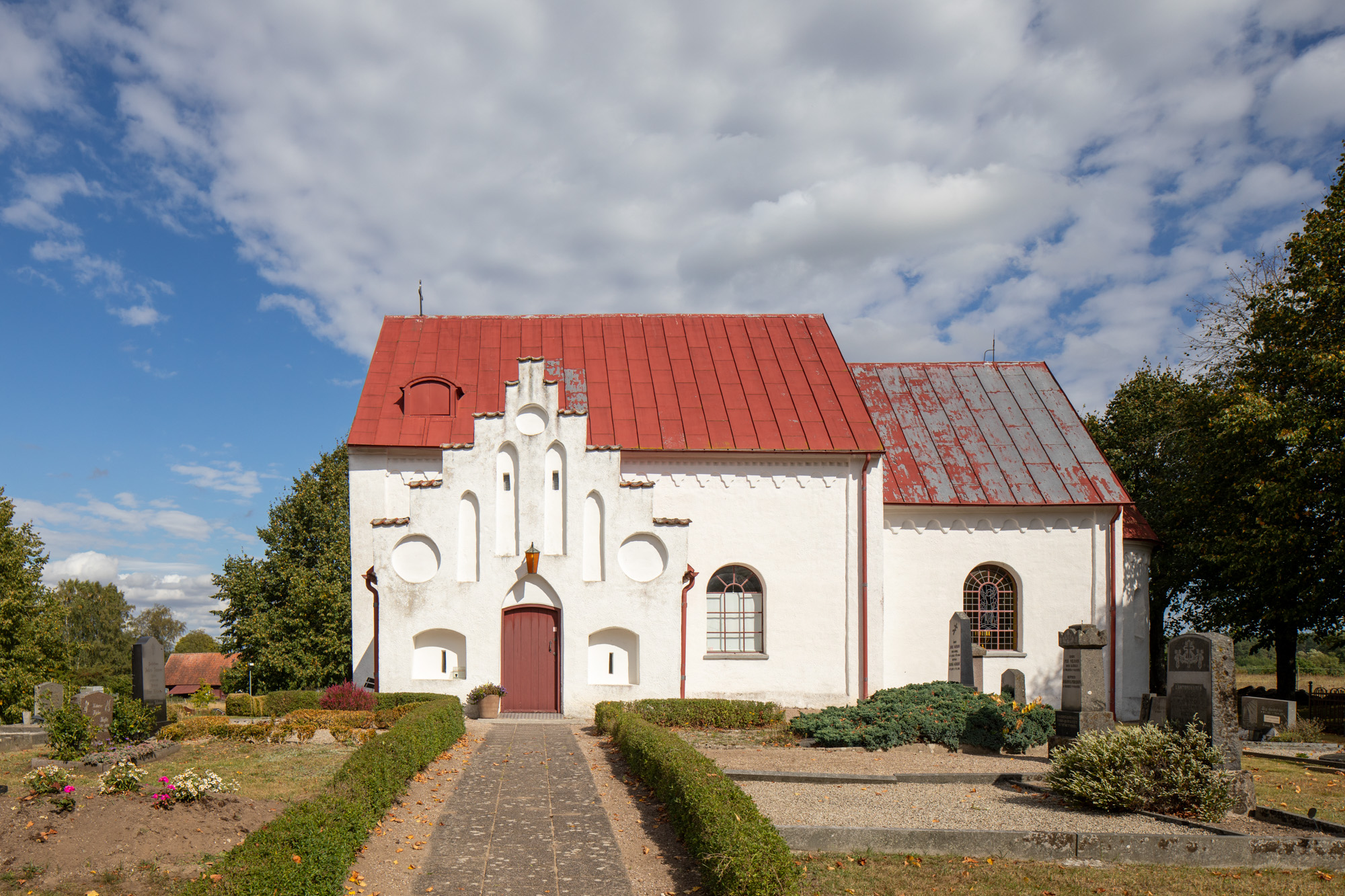 På skibets nordside er soklen gennembrudt, hvor døren har været. Syddøren inde i våbenhuset har to halvsøjler (Brunius). Våbenhuset, der formodentlig er opført omkring 1400, har spidsbuede og runde nicher på sydmuren samt kamtakket gavl. Hvælvingerne i skib og kor er sikkert fra samme tid, mens hvælvet i apsis stammer fra kirkens opførelse. I korets sydside har der været en præstedør.