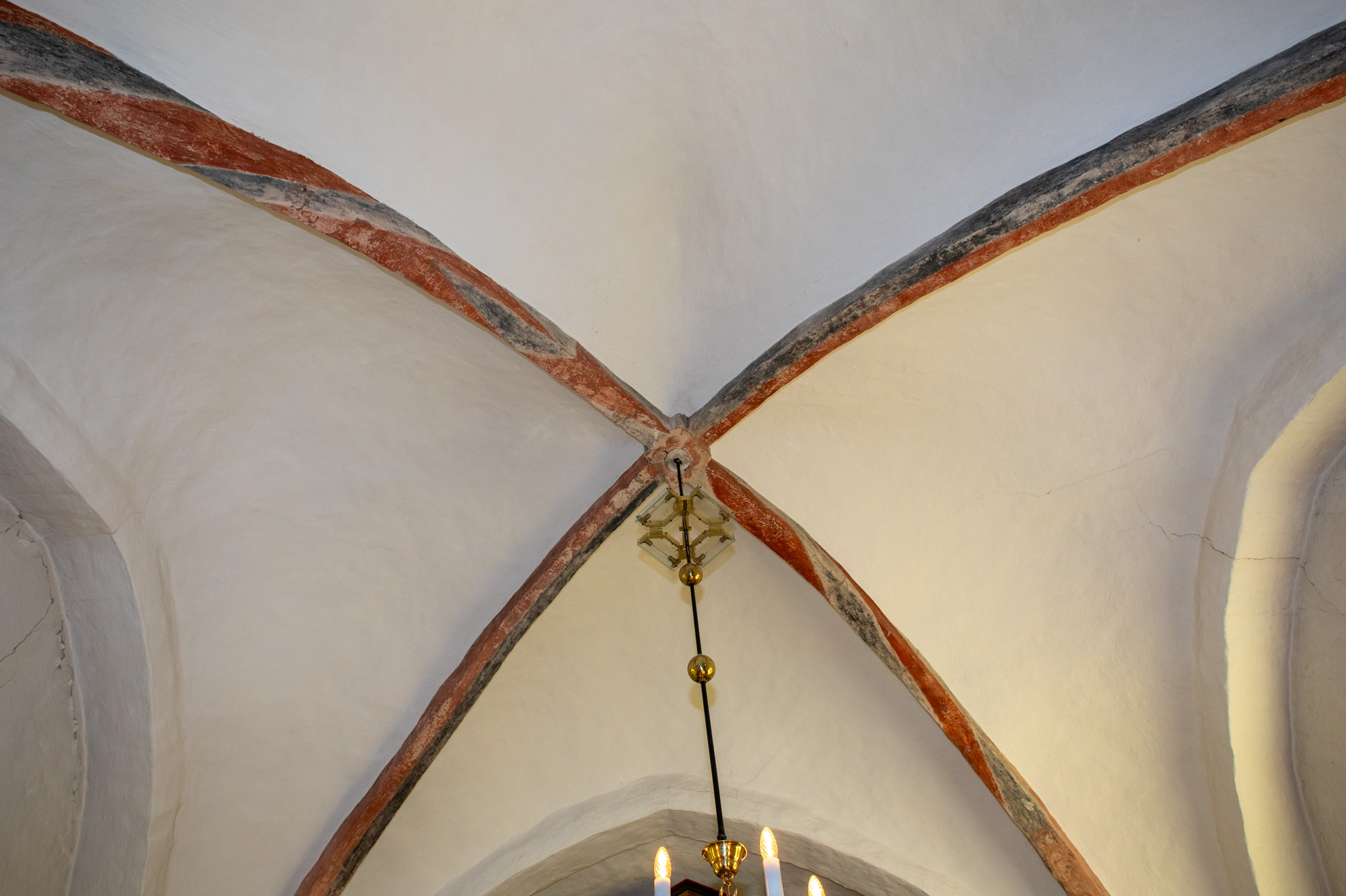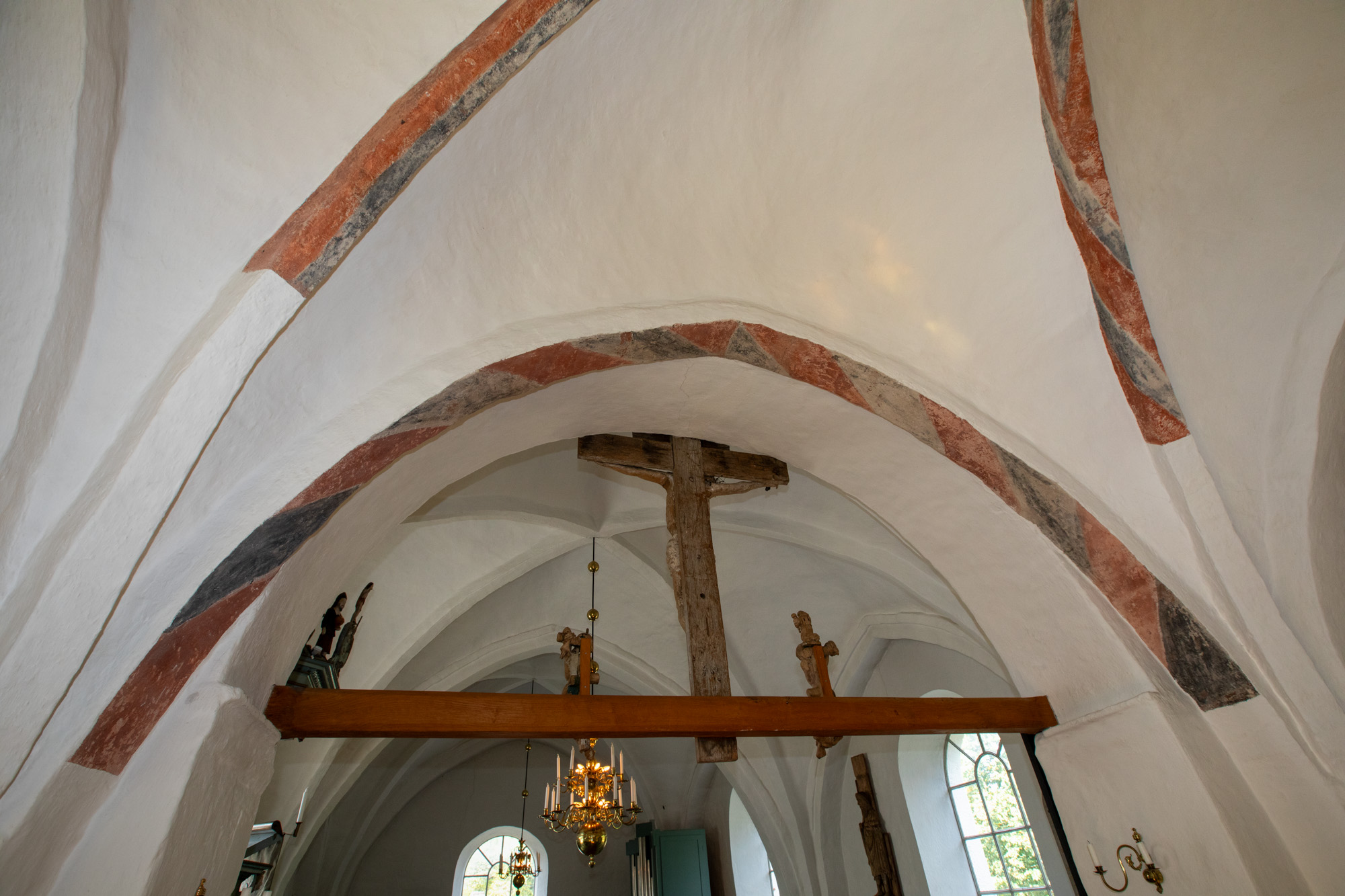 Af kalkmalerier findes en gotisk ribbebemaling i koret samt en enkel udsmykning i skibets første fag i nordkappens østlige svikkel. Bemalingen er formodentlig samtidig med hvælvingerne.