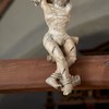 Han står med løftede hænder. I venstre hånd holder han en bog, hvorpå der har ligget et lam. Han er iført en kappe og derunder kamelhudsdragten, hvoraf man ser hoved og klove.