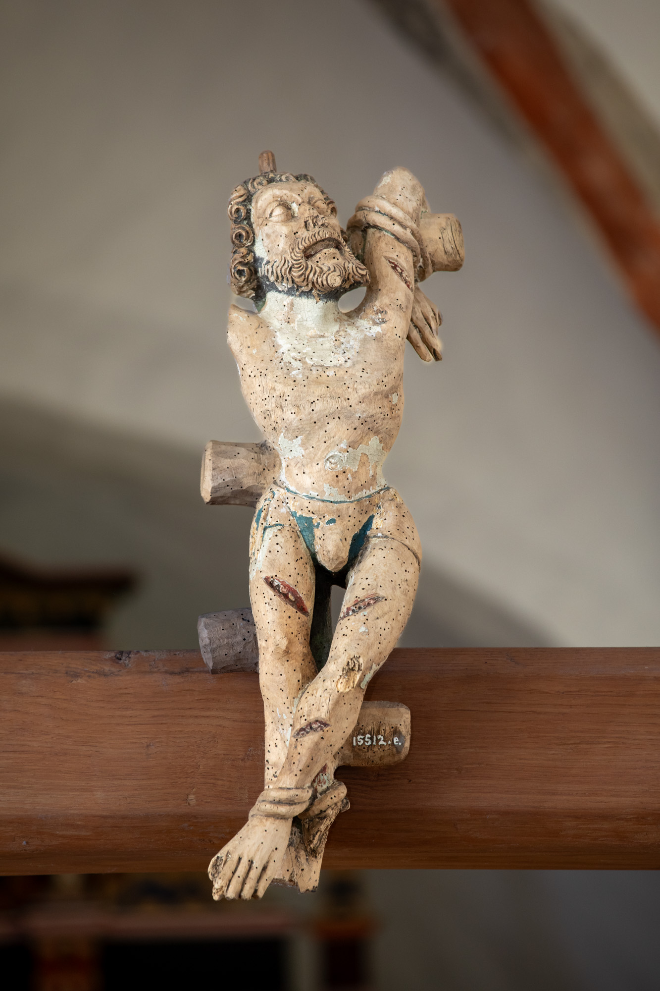 De to korsfæstede røvere har hørt til en skabsaltertavle.
