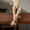 Hovedet hælder ned mod højre skulder. Tornekronen er snoet. Venstre arm er udstrakt horisontalt, mens højre er udstrkt diagonalt. Lændeklædet er bundet foran. Højre fod er lagt over venstre.