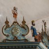 Topstykket har et felt med dobbelt bueslag. Også det er tomt. Det er flankeret af kvindelige hermer. I det lave gavlfelt står Guds navn med hebraiske bogstaver.