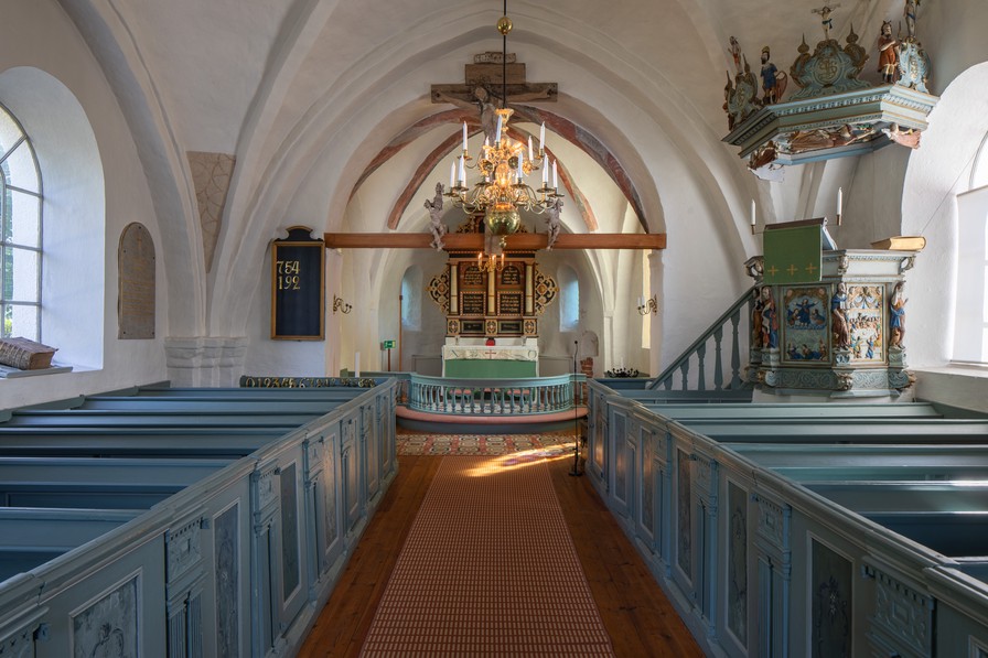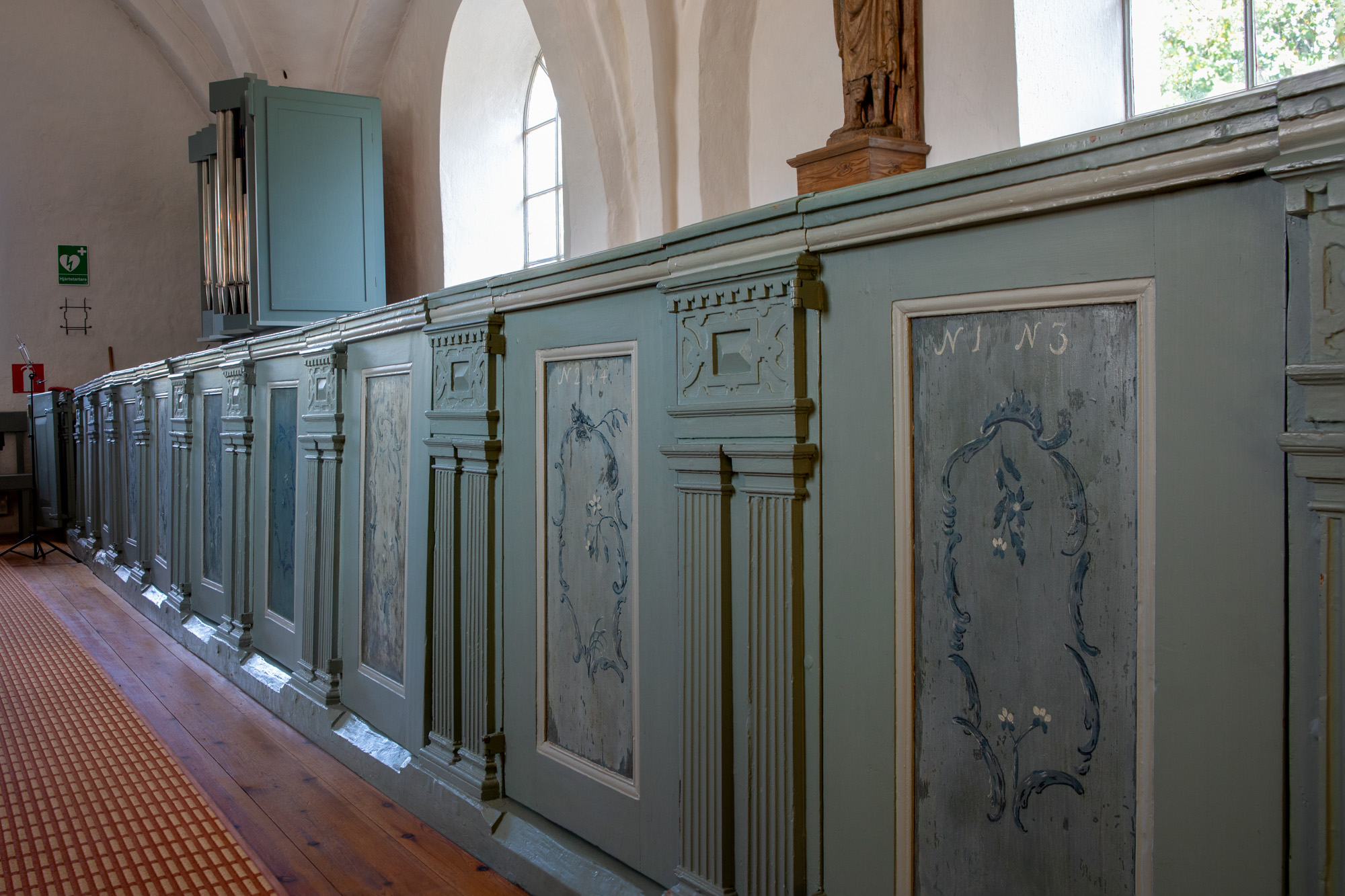 Bænkene er formodentlig samtidige med prædikestol og altertavle – midt i 1600-tallet. Bænkegavle og låger har fine renæssanceprofileringer.
