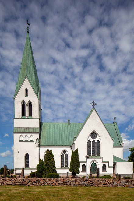 Kirken blev indviet i 1889 og erstattede da en kirke fra begyndelsen af 1200-tallet, som bestod af skib, kor og apsis. Dateringen er baseret på et fund af teglsten. Den blev udvidet i 1400-tallet med et våbenhus. I samme periode fik den hvælvinger. Formodentlig i 1600-tallet blev der bygget et tårn. 1788 blev der bygget en nykirke i form af en korsarm på skibets nordside. Alligvel valgte man sidst i 1800-tallet at bygge nyt. Det nederste af tårnet indgår i det nuværende tårn.