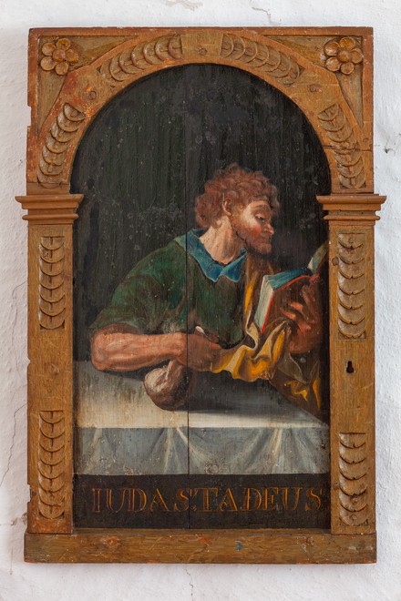 På vestvæggen findes to renæssancemalerier. Ifølge Kyrkoguider i Lunds stift kan de have tilhørt en ældre altertavle. Men da kirken allerede har en renæssancealtertavle, forekommer det ikke oplagt. De stammer sikkert fra to forskellige sammenhænge, da ornamentikken er forskellig. Mens den ene har dukatbånd i rammen, har den anden slyngbånd.