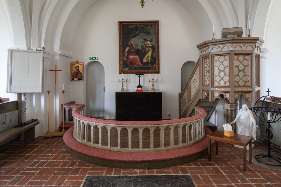 Alterbilledet blev skænket til kirken 1939 og er malet af den flamske maler Bartholomeus Spranger 1546-1611. Motivet er Kvinden ved Sykars brønd.