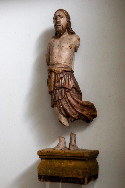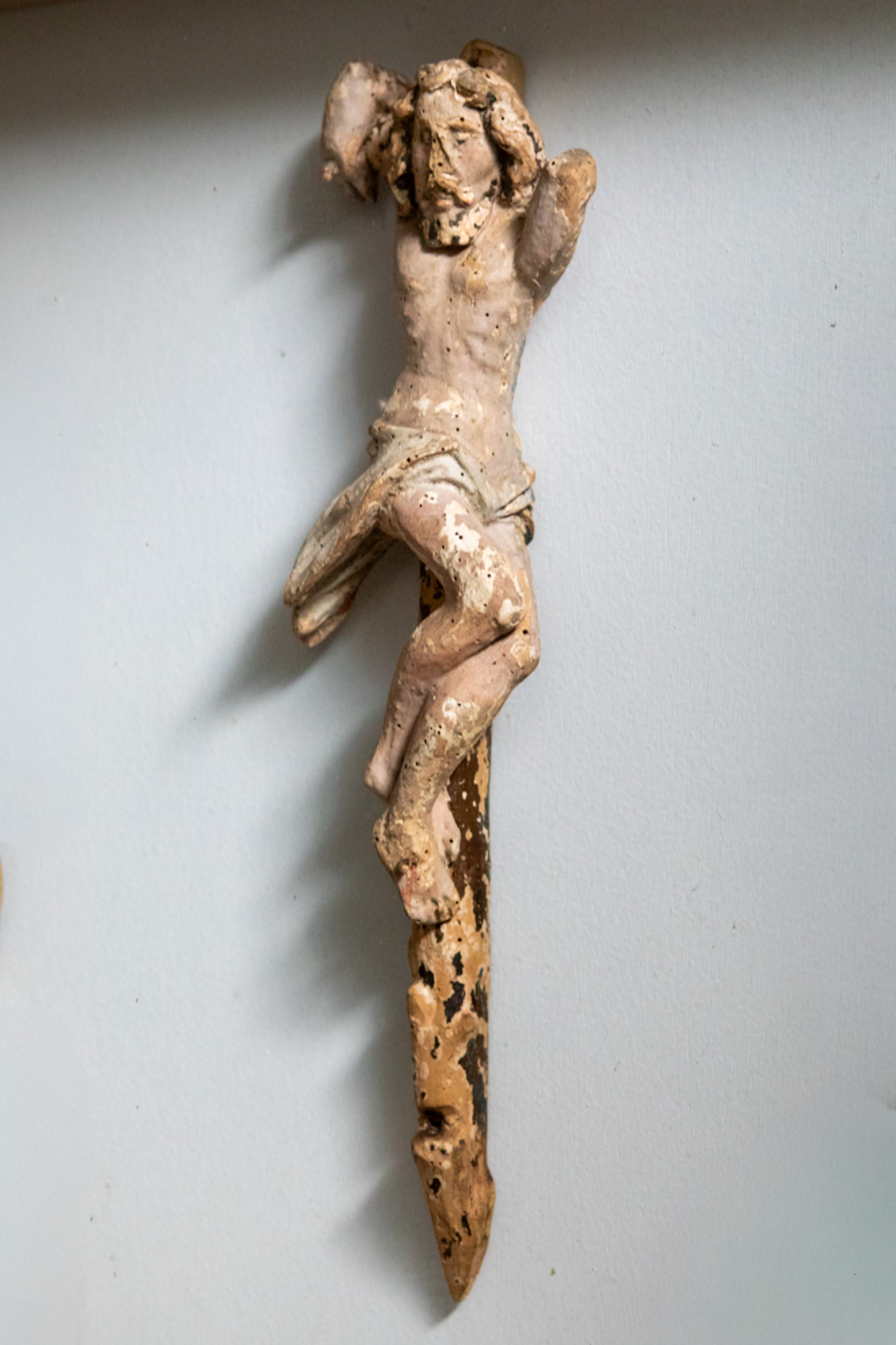 Figurer fra en altertavle, som ifølge inventarlisten fra 1830 bestod af ”bildhuggeriarbete ’föreställande Frälsarens korsfästelse och förfärdigad i Karl XI:s tid”.