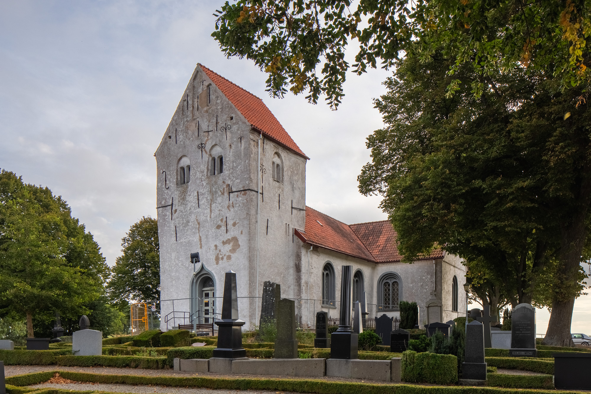 Kirken er opført i slutningen af 1100-tallet eller begyndelsen af 1200-tallet med skib, kor og måske apsis. I 1300-tallet blev der bygget et tårn i vest, og kirken fik krydshvælv. Byggematerialet er kalksten, men marksten i tårnet. Midt i 1400-tallet blev tårnet gjort højere (tornet påbyggdes). Spærrene er dateret til omkring 1459. Ved samme lejlighed blev der bygget en hvælving i tårnrummet. I senmiddelalderen blev der opført et våbenhus på skibets sydside.