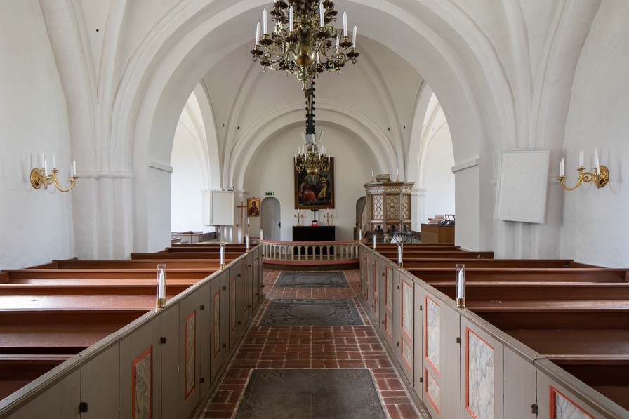 Der er bevaret lidt af den oprindelige bemaling, ellers er bemalingen efter middelalderen.