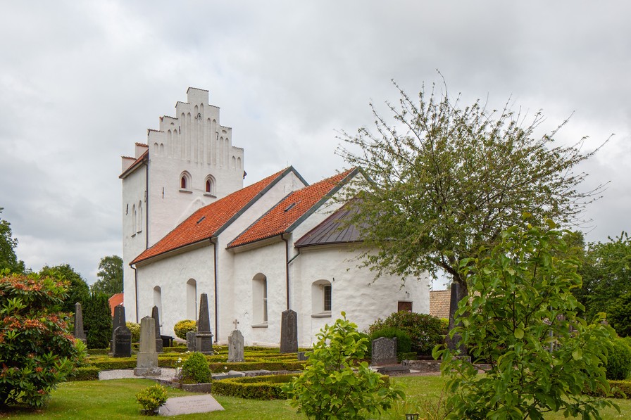 Kirken er opført i slutningen af 1100-tallet af kampesten med anvendelse af fint tilhuggede sandsten til sokkel, hjørner og rundt om vindues- og døråbninger. Oprindeligt var facaderne ikke pudsede. Udover de sædvanlige nord- og sydindgange var der også en indgang i korets sydside, sikkert en præstedør.