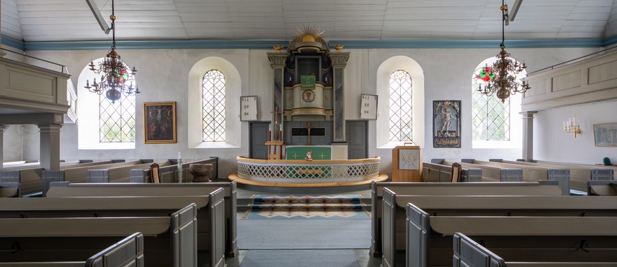 Tynell kender ikke nogen middelalderlig font, men anfører, at kirken ifølge inventarlisten 1830 havde en døbefont af træ.