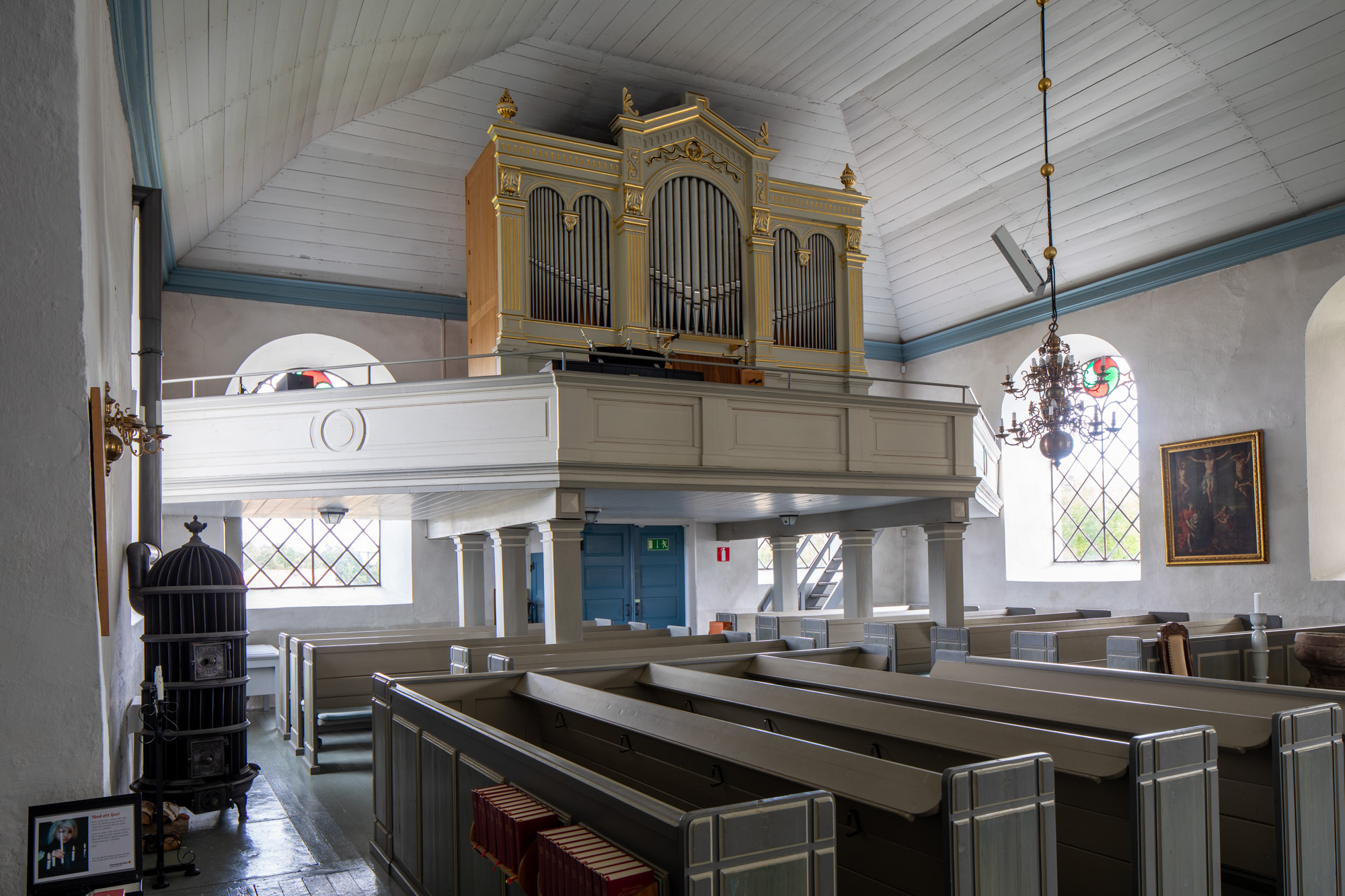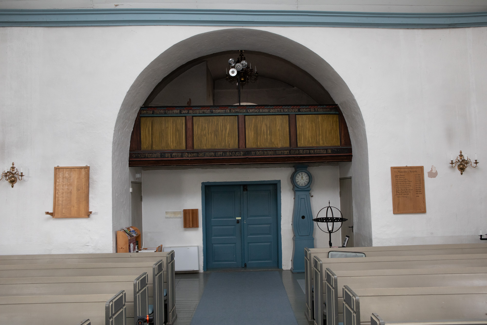 Dette pulpitur, som er anbragt i kirkens vestende, er fra 1600-tallet. Årstallet for stafferingen er desværre udslettet. Efter teksten at dømme, som består af en mindre del af trosbekendelsen, må det oprindeligt have været et temmelig stort pulpitur. Foroven står der: