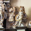 Mellem storfelterne er der skulpturer, der fremstiller Peter, de fire evangelister samt en uidentificeret apostel.