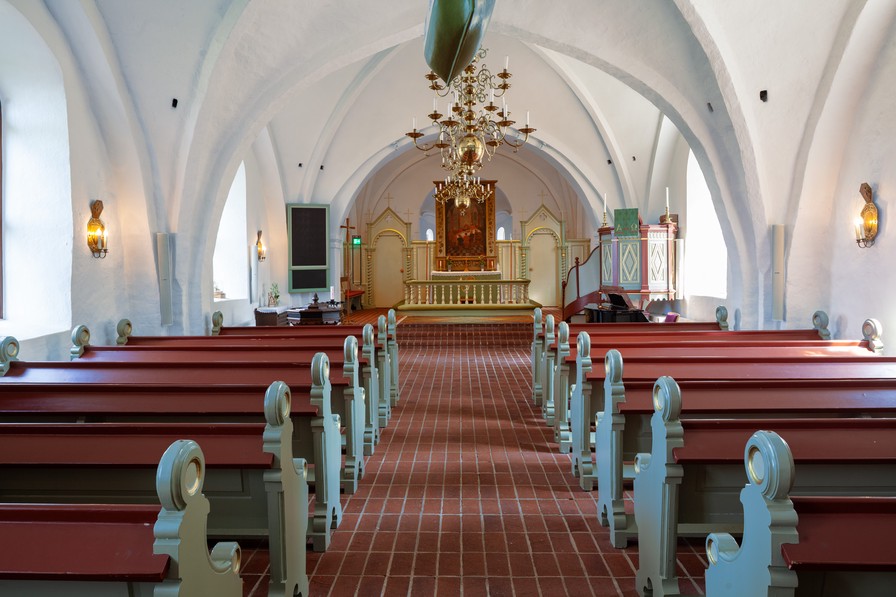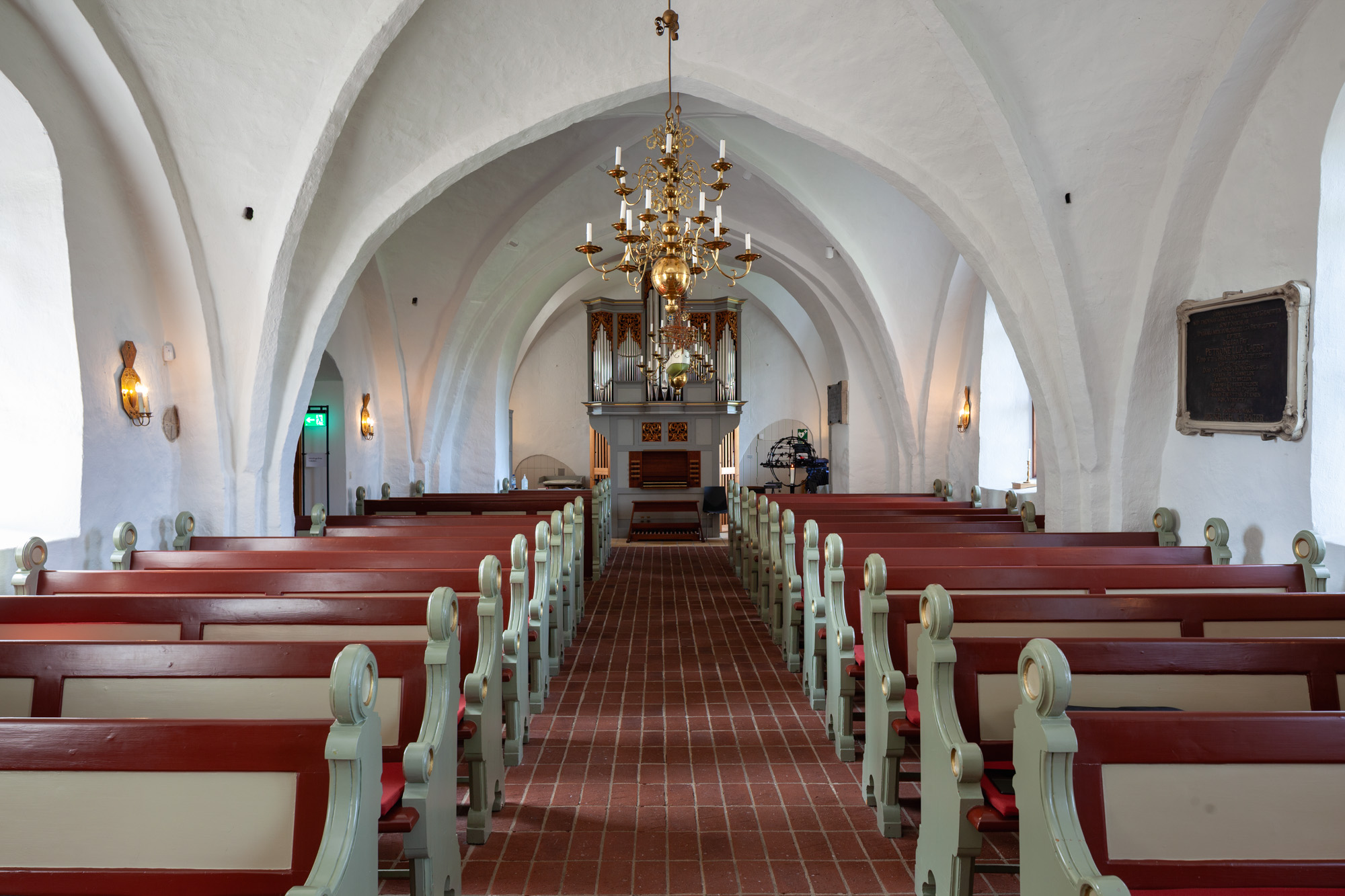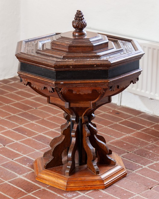 I kirken står en døbefont af træ fra første halvdel af 1600-talllet. Den er ottekantet og har et låg med slyngbånd.