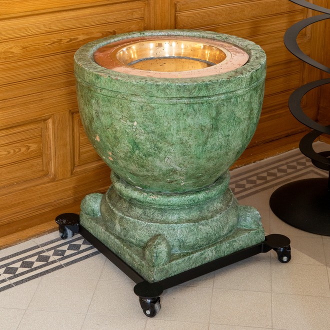 På Lunds Universitets Historiska Museum findes en sten med et relikviegemme, som stammer fra kirkens alterbord. Det har fals til en dækplade (tabula). Ud for hvert hjørne er der fire huller, der sikkert har været anvendt til forsegling af relikviegemmet.