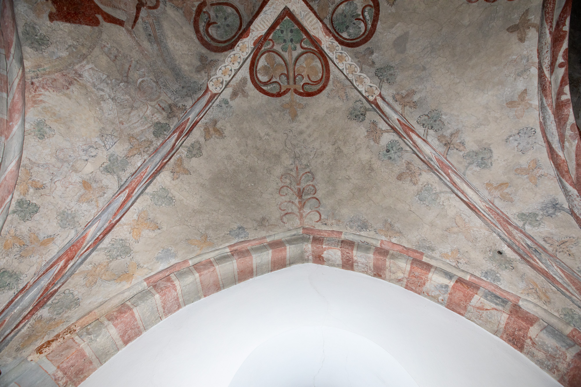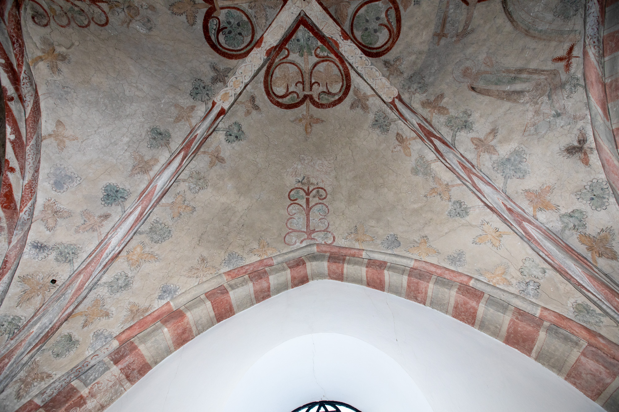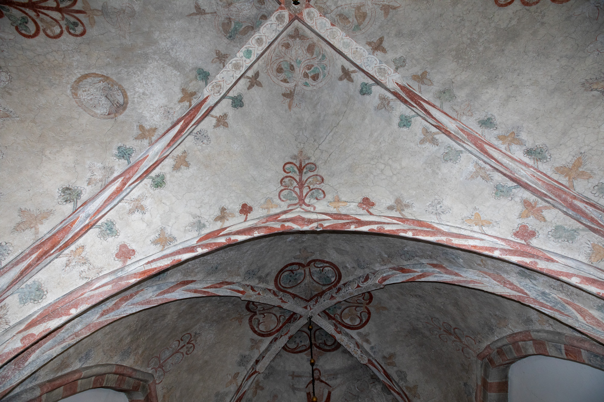 Kalkmalerierne er udført af Snårestedværkstedet 1325-1350. De findes i de to østligste fag i skibet.