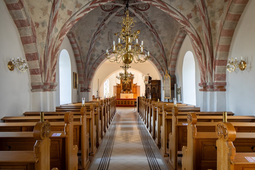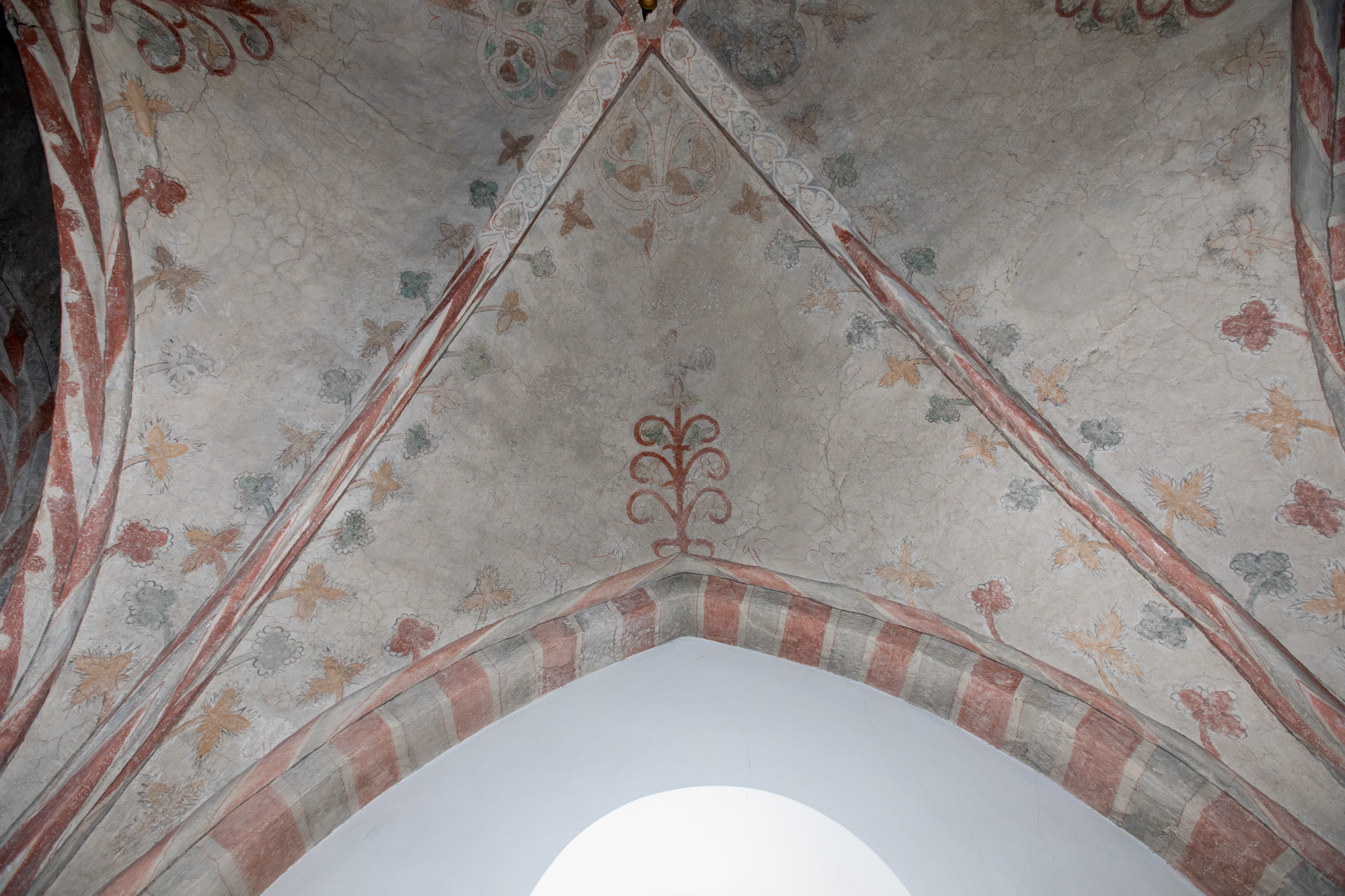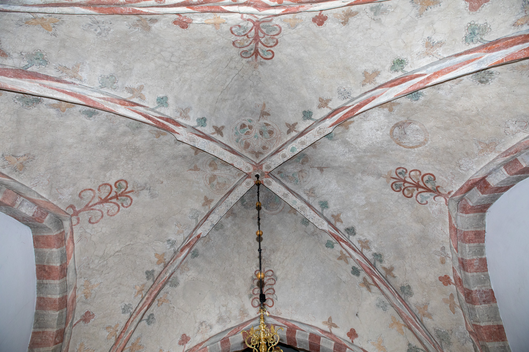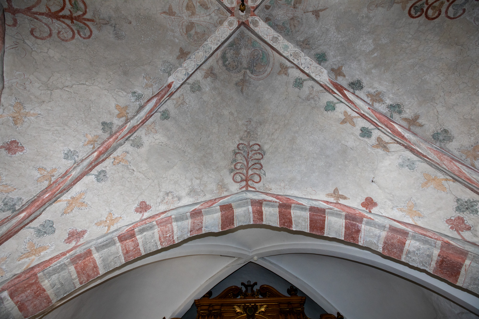 Kalkmalerierne er udført af Snårestedværkstedet 1325-1350. De findes i de to østligste fag i skibet.