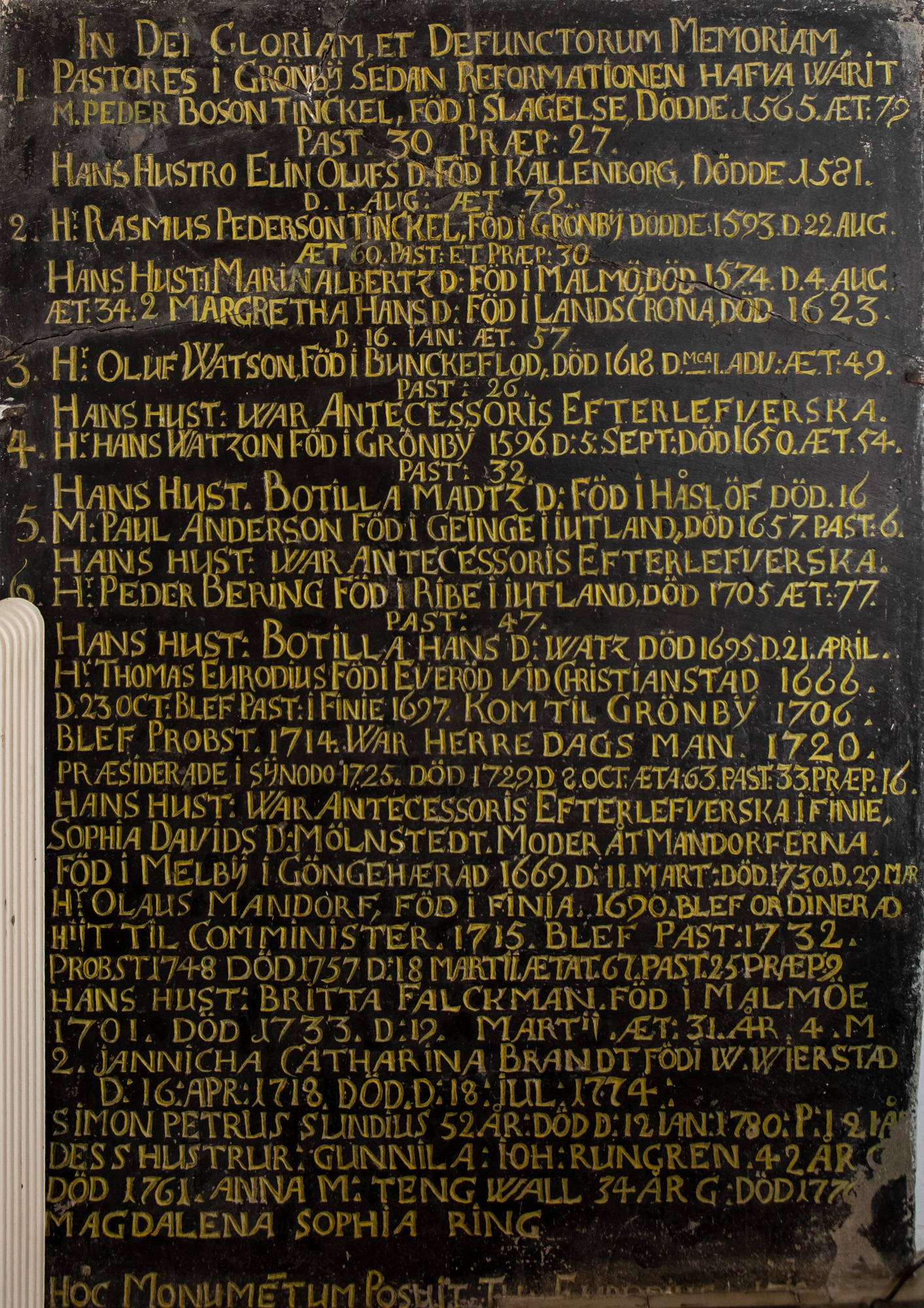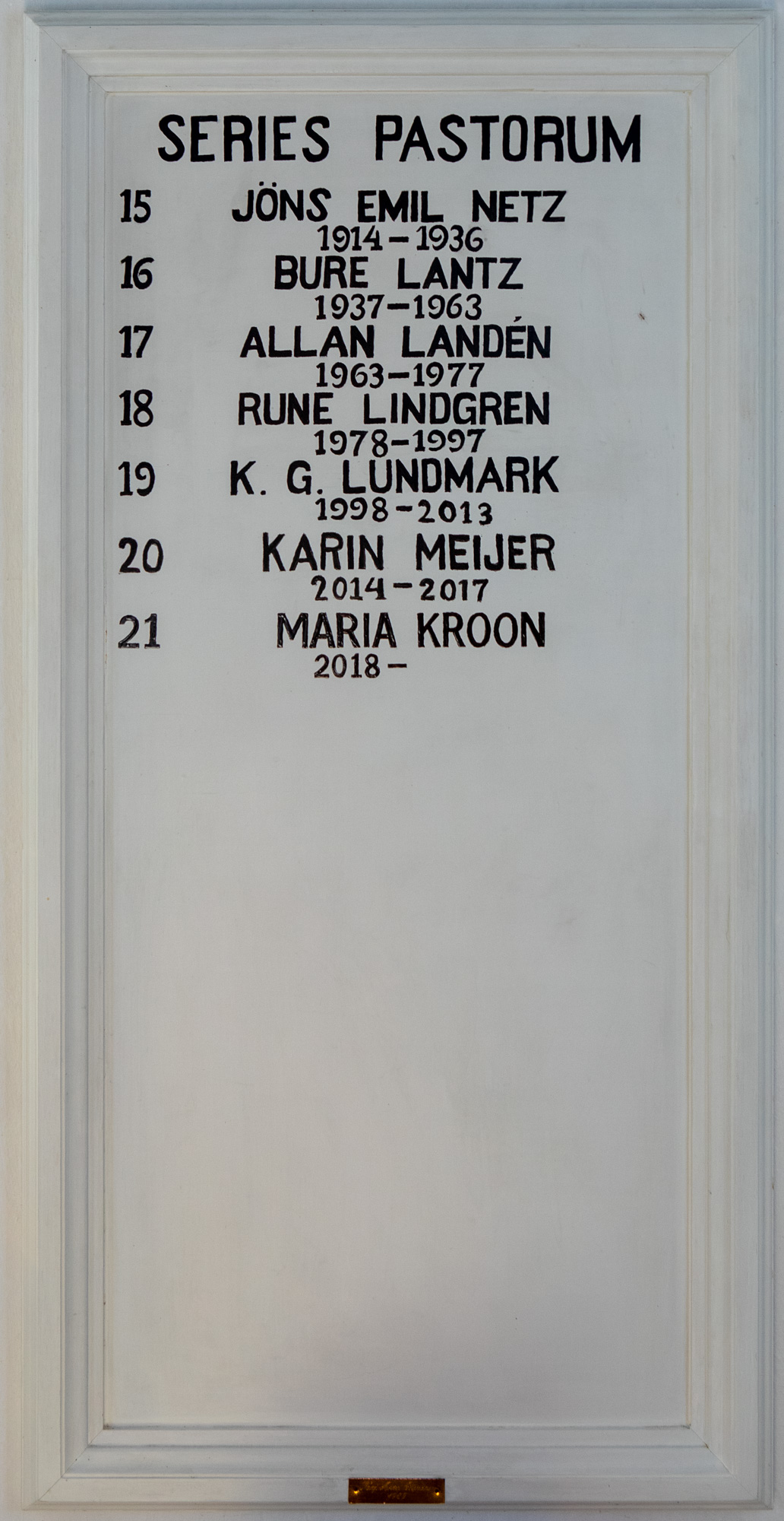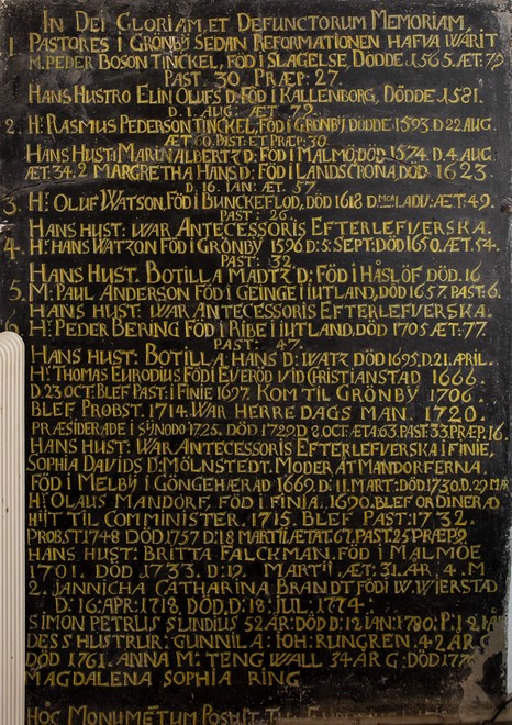 Præstetavlen er usædvanlig derved, at den giver oplysninger om præsternes fødested og om præstehustruerne.
