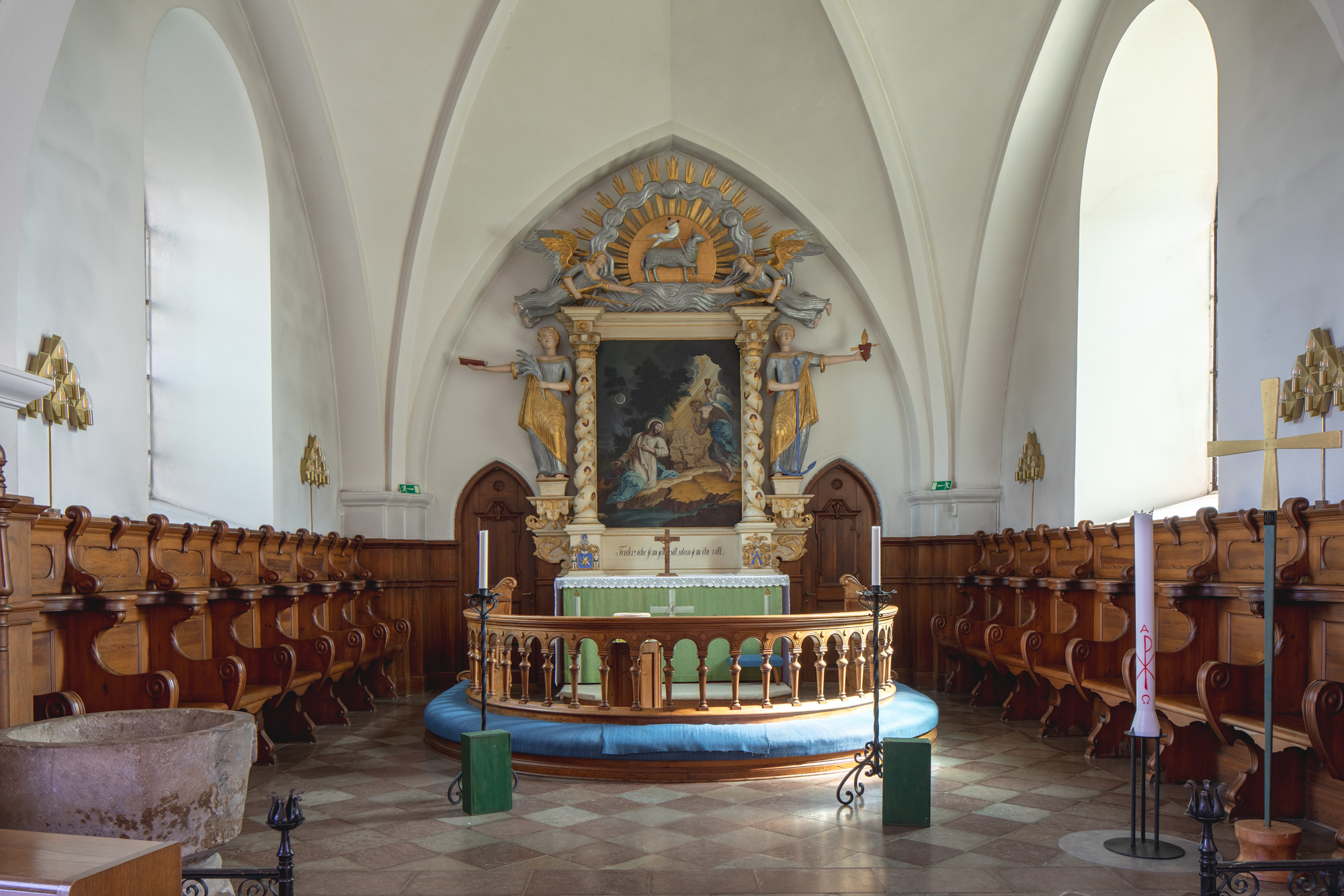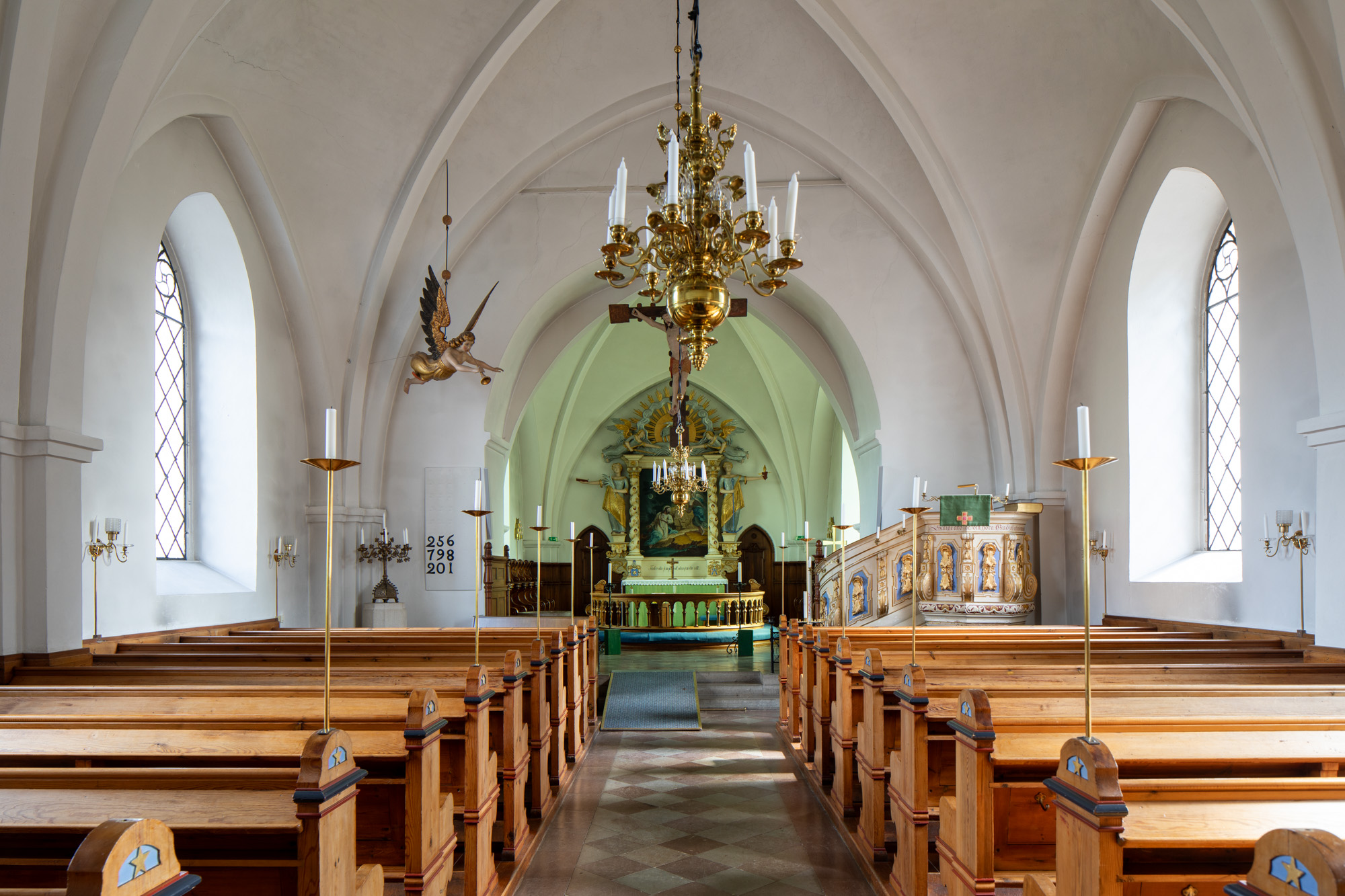 Altertavlen er et værk af Johan Ullberg, 1762.