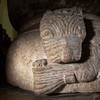 - Et løvehoved, som bider over et menneske.