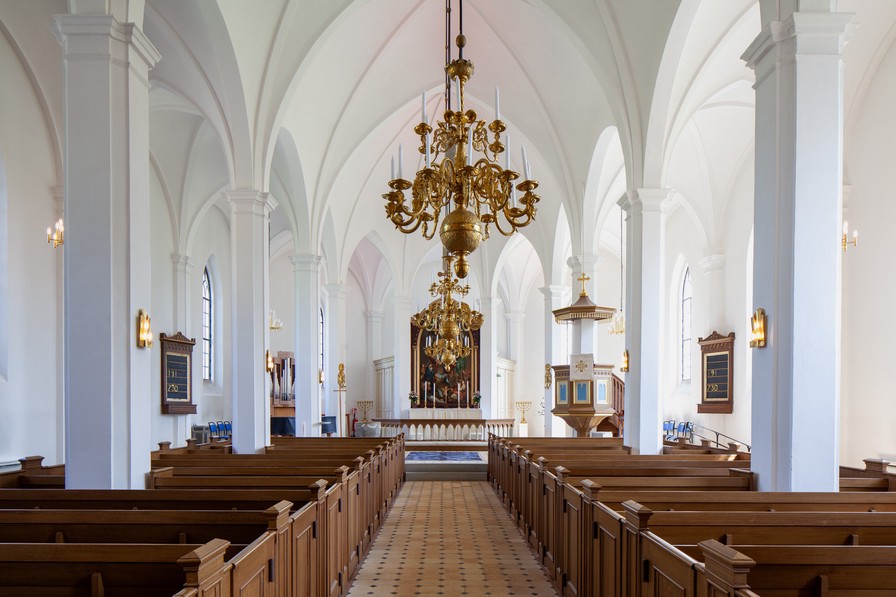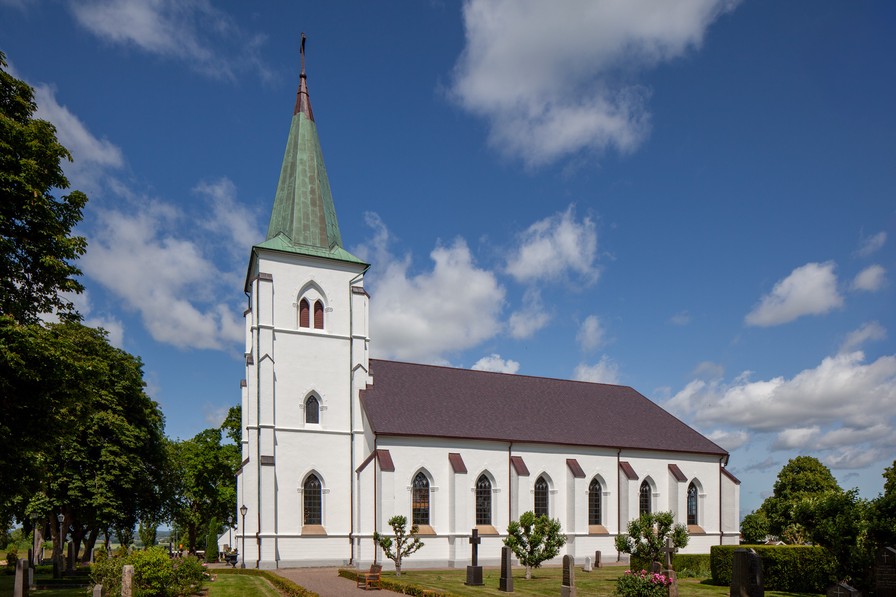 Sognets første kirke blev formodentlig opført i første halvdel af 1200-tallet at dømme ud fra en datering af døbefonten. Den romanske kirke er omtalt i et bevaret regnskab fra 1588. På det tidspunkt planlagde man en renovering af vinduer, blytækning af taget og at sætte bænke ind. I en regnskabsbog fra 1662 beskrives kirken som en blytækt kampestenskirke med hvælvinger i skibet, tårn og på sydsiden et våbenhus opført af teglsten. 1767 blev der opført en korsarm på nordsiden. Våbenhuset blev revet ned i 1823, og en ny indgang blev lavet i tårnets vestfacade.