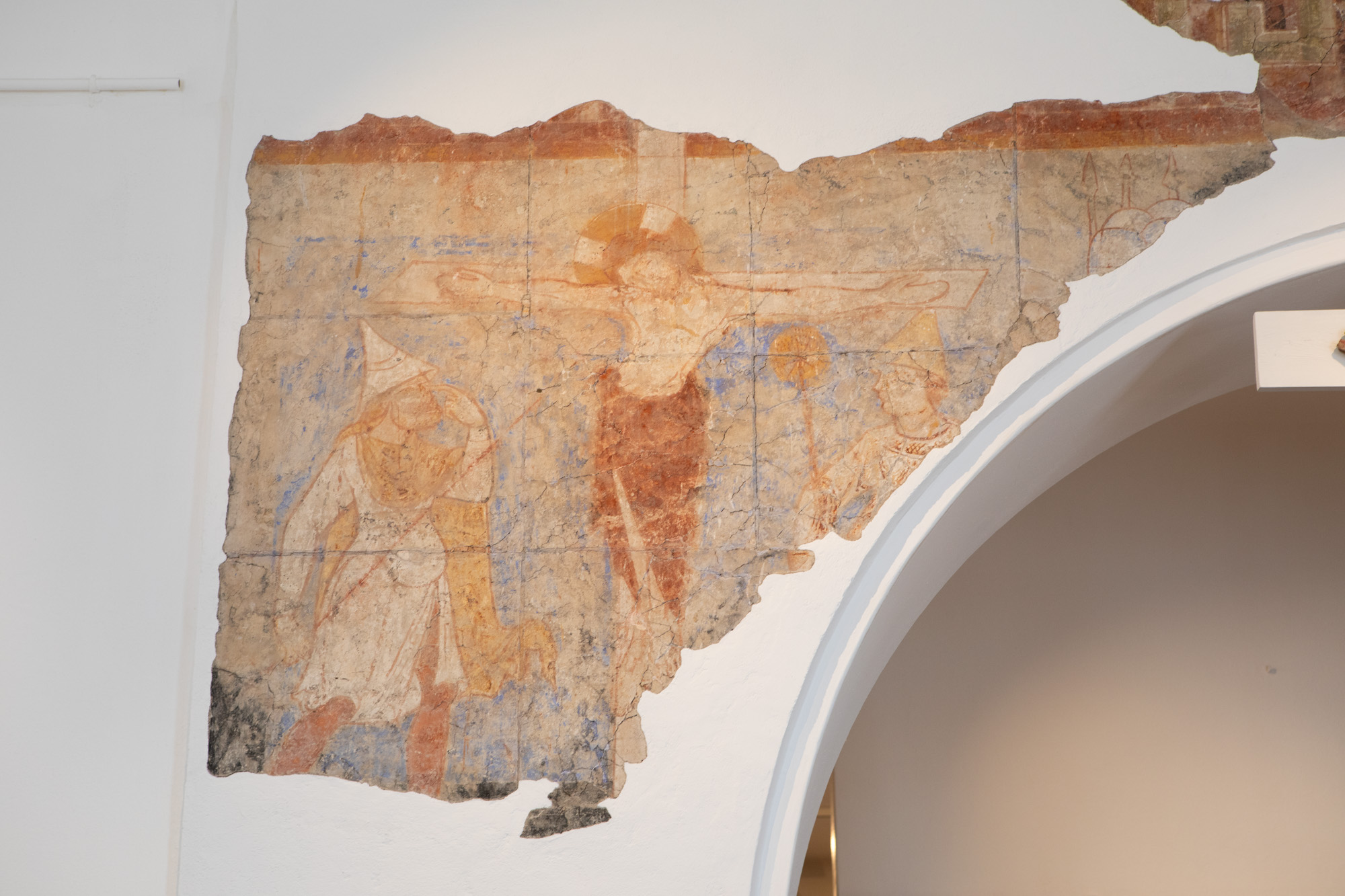 Længst mod vest på nordvæggen over hvælv i koret var der en korsfæstelsesscene, som blev aftrukket i 1919 og overført til LUHM. Kristus hænger på korset iført et ankellangt lændeklæde. På hans højre side (til venstre for beskueren) står Longinus og stikker ham med sit spyd. På hans venstre side står Stefaton og rækker svampen med eddike op til ham. Begge er iklædt jødehatte. I øverste højre hjørne ses fire hjelme og tre lanser.