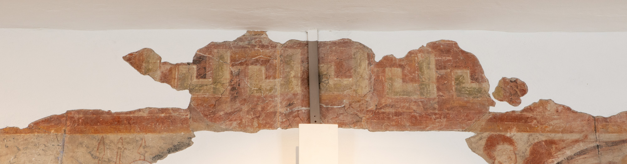 Over vinduesbuen er bevaret et fragment af en mæanderbort.